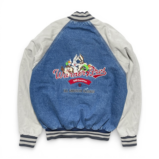 USA 古着 ワーナーブラザーズ ルーニーテューンズ ヴィンテージ 中綿 ブルゾン スタジャン デニムブルゾン メンズS AK0372