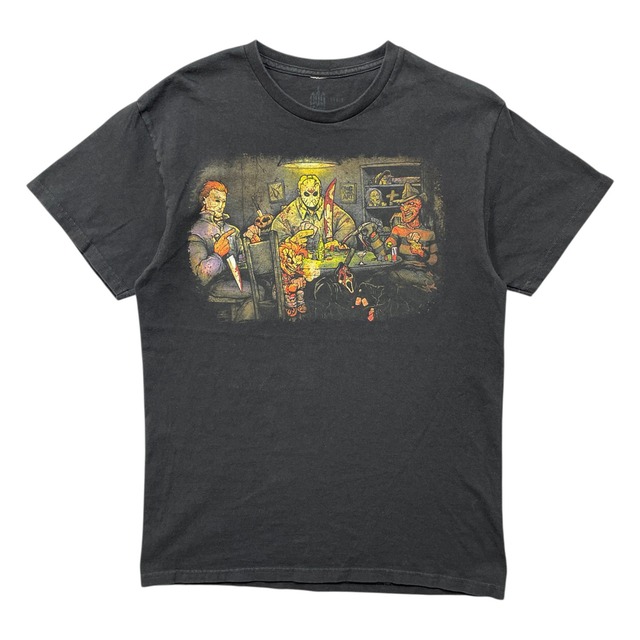 USA 古着 ホラー映画 キャラクター ジェイソン フレディ クルーネック Tシャツ プリント メンズM ブラック ポーカー BA5009