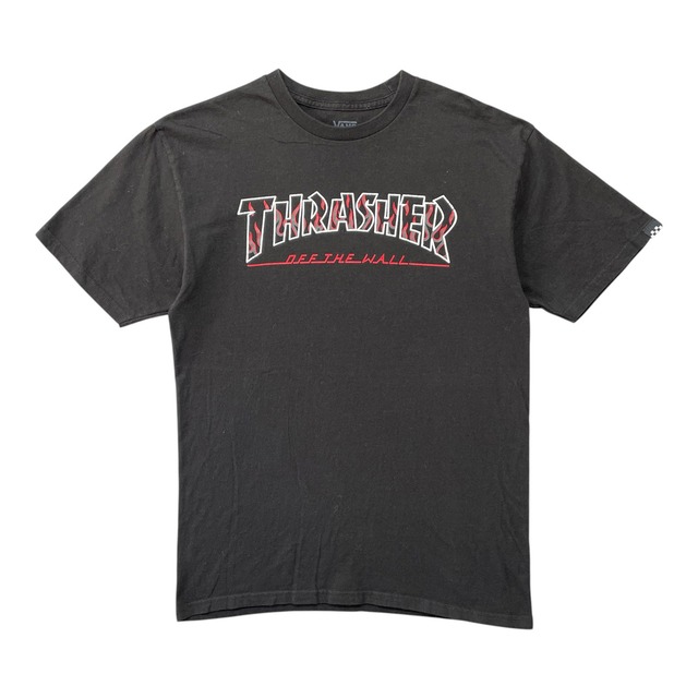 USA 古着 VANS バンズ ヴァンズ THRASHER スラッシャー コラボ クルーネック Tシャツ プリント メンズM ブラック BA5033
