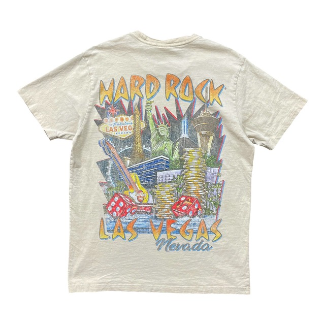 USA 古着 PACSUN Hard Rock CAFE ハードロックカフェ ラスベガス クルーネック Tシャツ プリント メンズM ベージュ BA5023