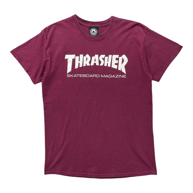 USA 古着 THRASHER スラッシャー ロゴ プリント クルーネック Tシャツ プリント メンズM ボルドー スケーター BA4925