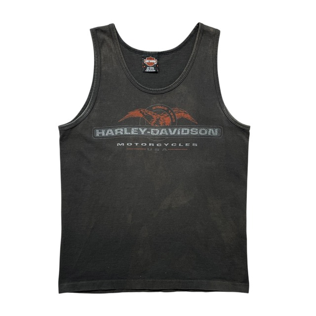 USA 古着 HARLEY-DAVIDSON ハーレーダビッドソン バンコク タイ リンガー クルーネック タンクトップ プリント ブラック BA5032