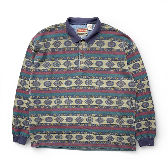 USA 古着 90S Business People ビジネスピープル ヴィンテージ 鹿の子コットン 総柄 長袖 ポロシャツ メンズL BC0184