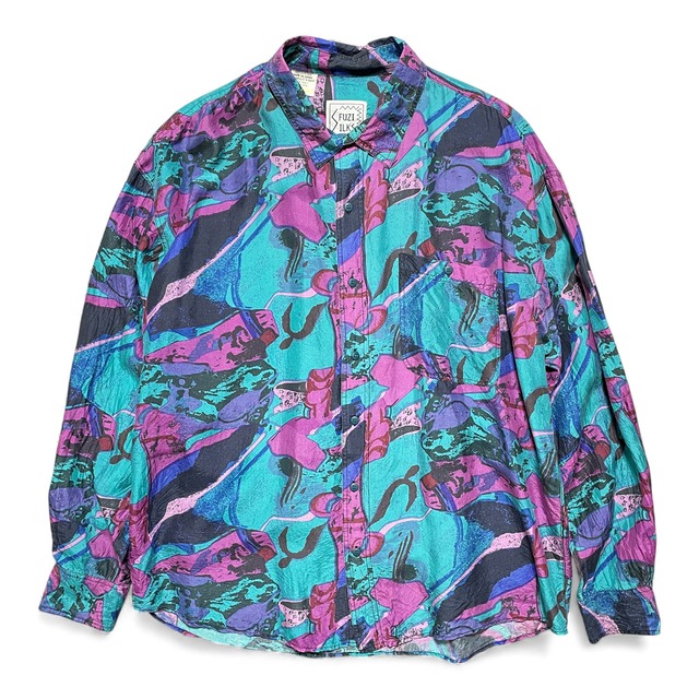 USA 古着 80S 90S ヴィンテージ FUZI SILKS シルク 総柄 柄シャツ 長袖シャツ ドレスシャツ メンズXL BG1200