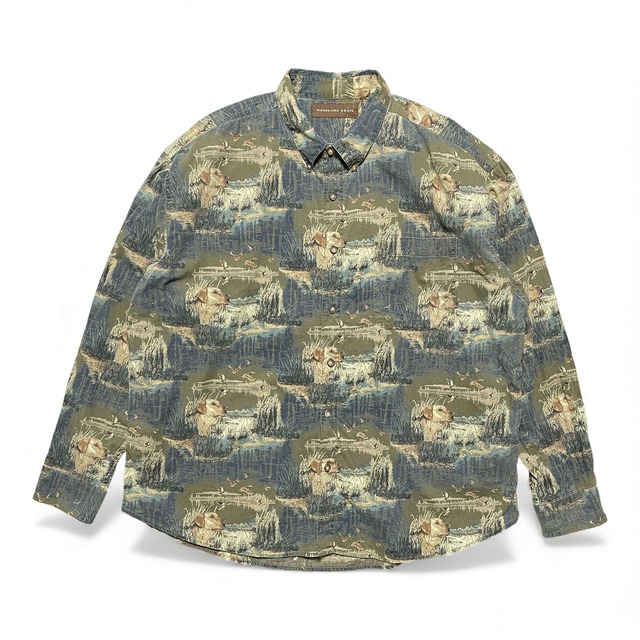 USA 古着 ヴィンテージ WOODLAND TRAIL ヴィンテージ コットン ハンティング柄 総柄 長袖シャツ メンズXXL オーバーサイズ BG1197
