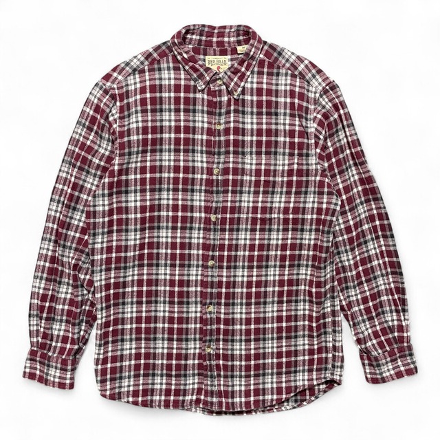 古着 RED HEAD レッドヘッド アウトドア コットン ライトシャモアクロス 長袖シャツ ネルシャツ メンズL ボルドー BG1079