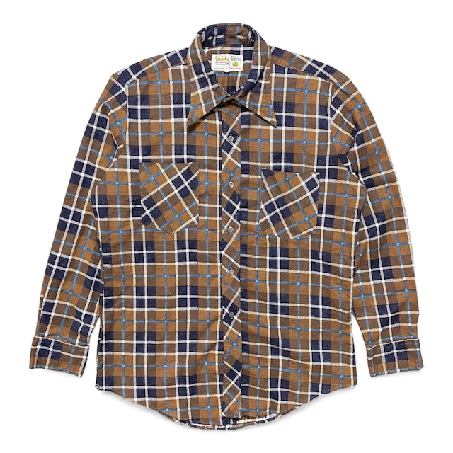 USA 古着 70S Cranbrook ヴィンテージ コットン プリントフランネル ネルシャツ チェック柄 長袖シャツ メンズM BG1186