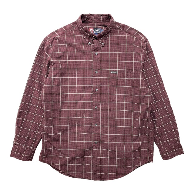 USA 古着 CHAPS RALPH LAUREN チャップス ラルフローレン コットン チェック柄 長袖シャツ ボルドー メンズL カジュアルシャツ BG1377