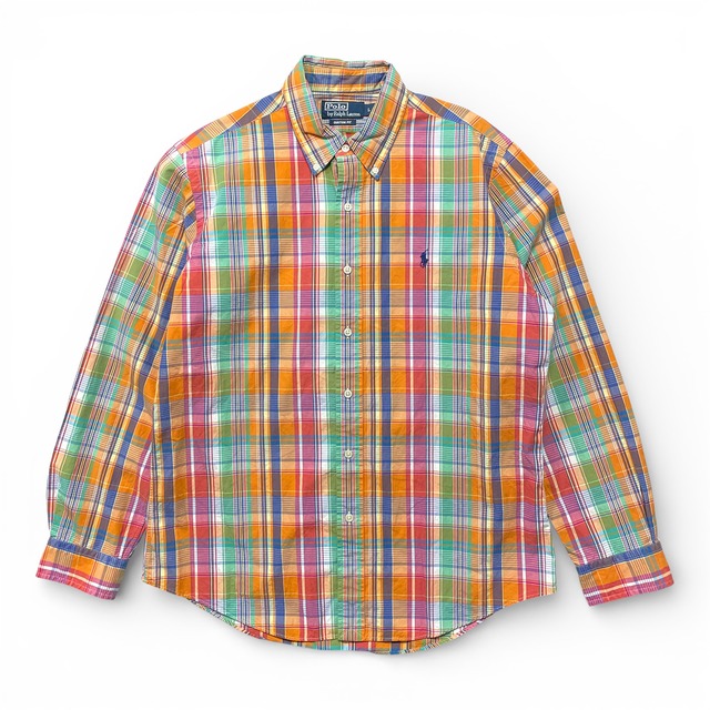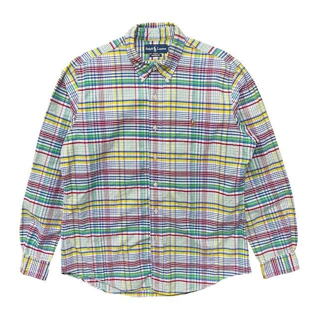 USA 古着 Ralph Lauren ラルフローレン コットン マドラスチェック 長袖シャツ BDシャツ メンズL カジュアルシャツ BG1359