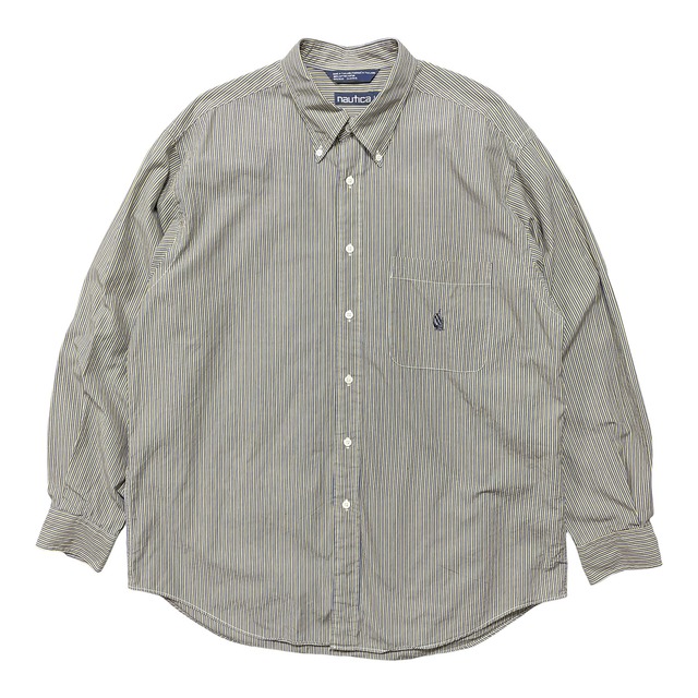 USA 古着 90S nautica ノーティカ ヴィンテージ コットン ストライプ 長袖シャツ メンズL セーリング 小文字タグ カジュアルシャツ BG1378