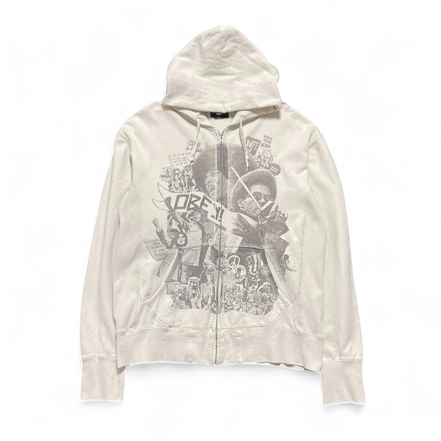 USA 古着 OBEY オベイ ジップアップ スウェット パーカー プリント ベージュ メンズXL オーバーサイズ BE0873