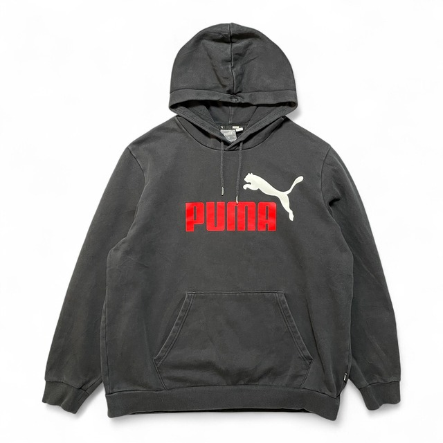 USA 古着 PUMA プーマ スウェット パーカー ロゴ プリント ブラック メンズXL プルオーバー BE0896