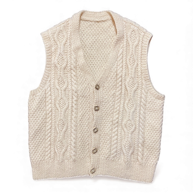 USA 古着 70S 80S ヴィンテージ ウールニット フィッシャーマン ニットベスト ハンドニット 手編み アランニット メンズL/XL相当 BI0145