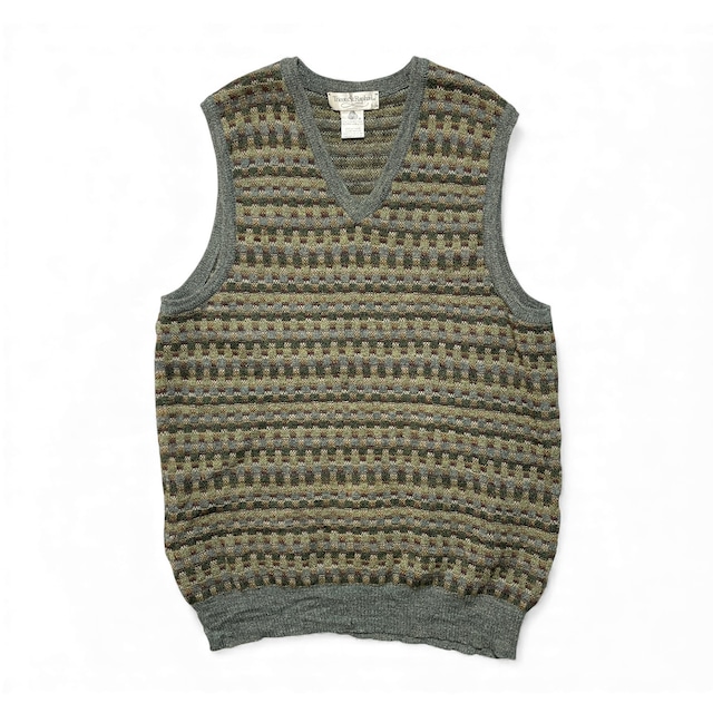 USA 古着 ウルグアイ製 Tricots St Raphaele トリコセントラファエル ウール モザイク編み ニットベスト メンズL グレー系 総柄 BI0142