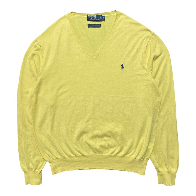USA 古着 Polo by Ralph Lauren ポロ バイ ラルフローレン ピマコットン Vネック セーター イエロー メンズL 黄色 BJ0980