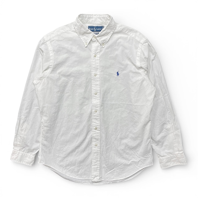 USA 古着 RALPH LAUREN ラルフローレン オックスフォード コットン 長袖シャツ 白シャツ ホワイト メンズL BG1386