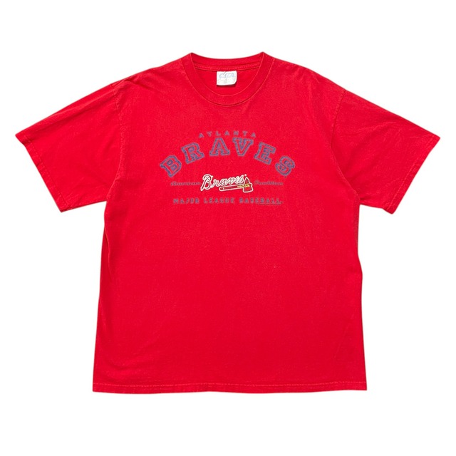 USA 古着 00S MLB アトランタブレーブス Tシャツ ロゴ プリント レッド メンズXL クルーネック メジャーリーグ BA4691