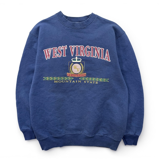 古着 USA製 90S ウェストバージニア大学 カレッジ ヴィンテージ クルーネック スウェット トレーナー プリントロゴ ネイビー メンズM BD3331