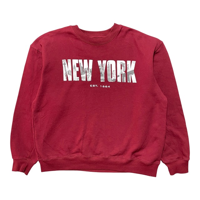 USA 古着 ニューヨーク 自由の女神 スウェット トレーナー プリント ボルドー メンズL クルーネック BD2626