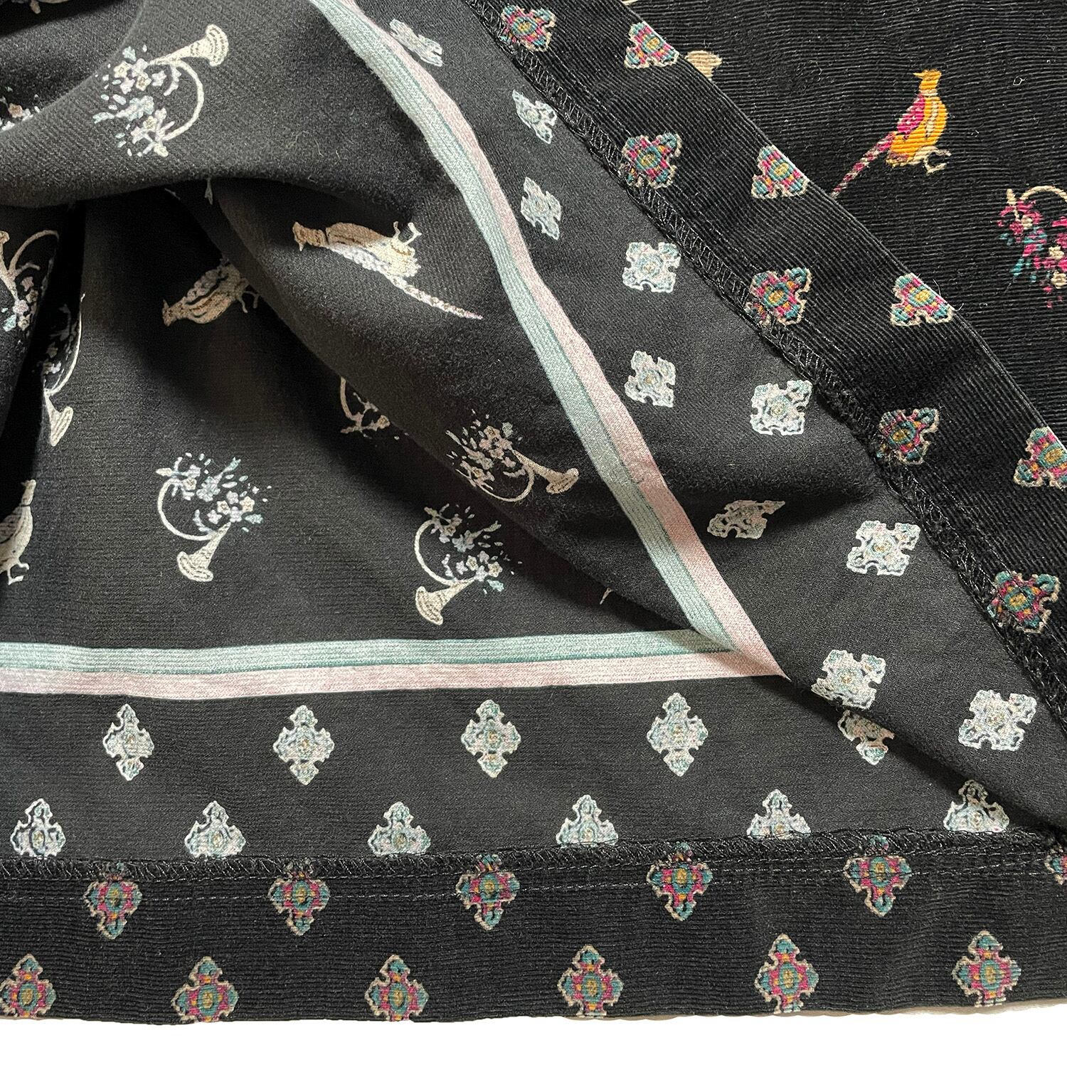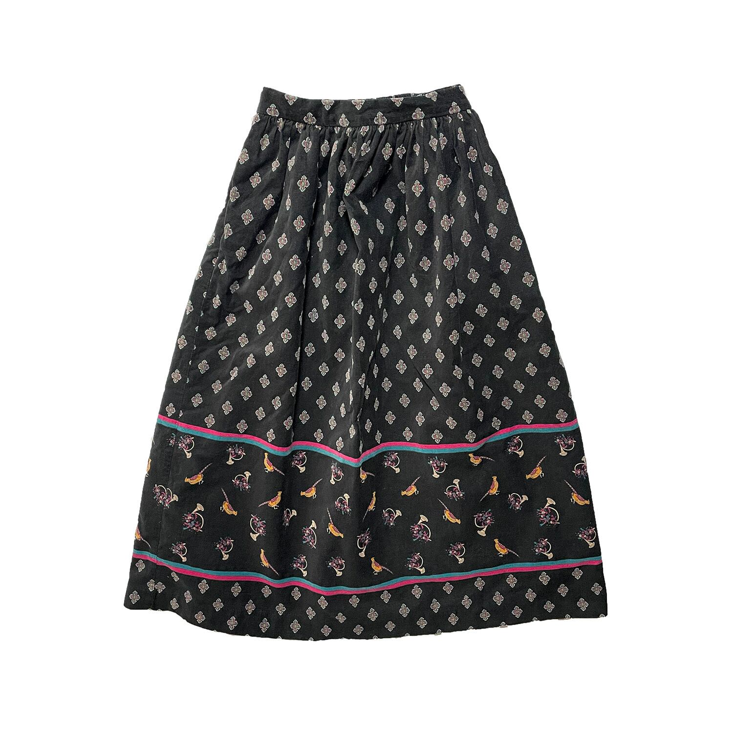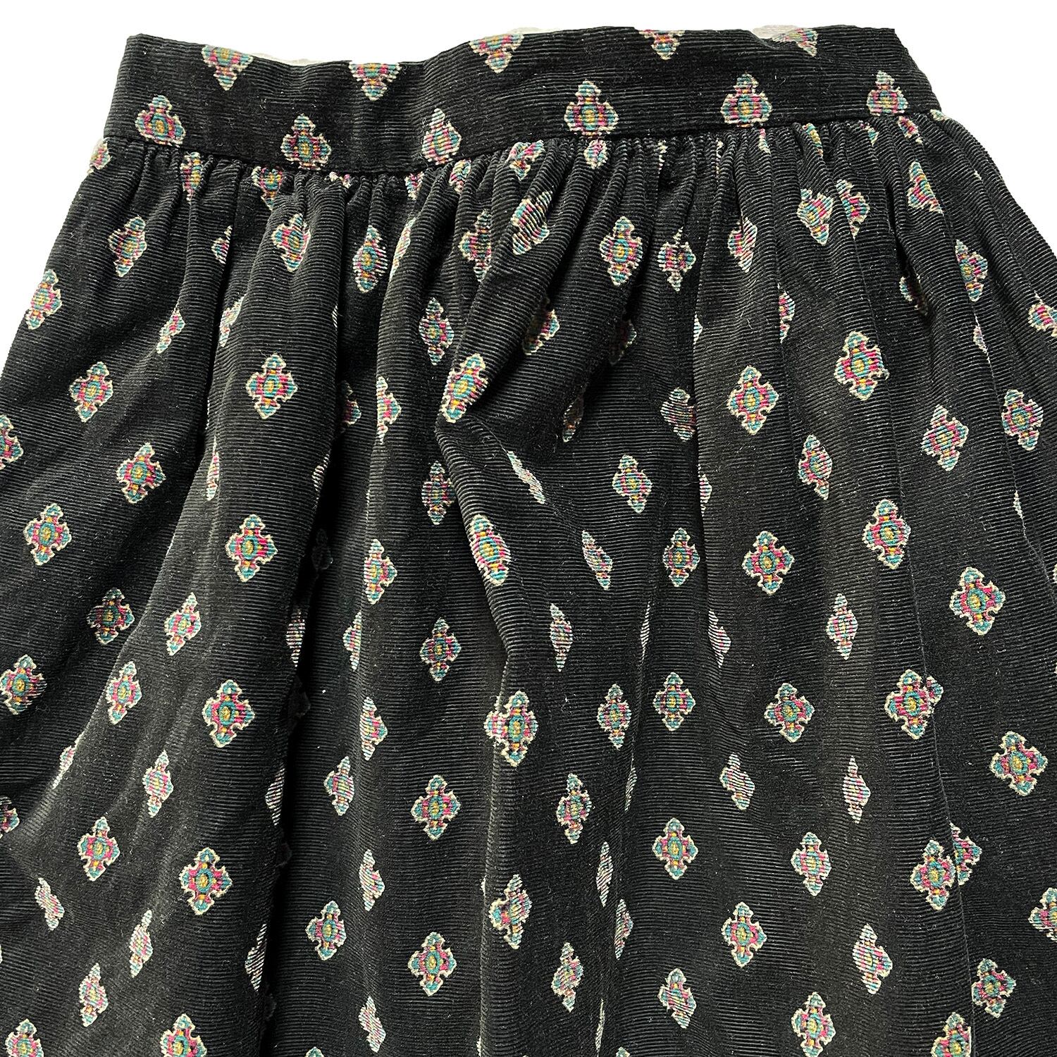 USA 古着 60S 70S USA製 F.A.CHATTA ヴィンテージ コットン 横畝 コーデュロイ 小紋柄 孔雀 フレアースカート ブラック 6号 CG0133