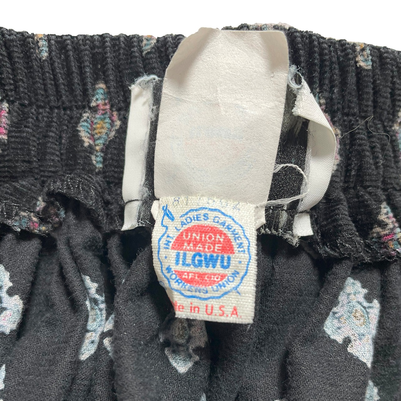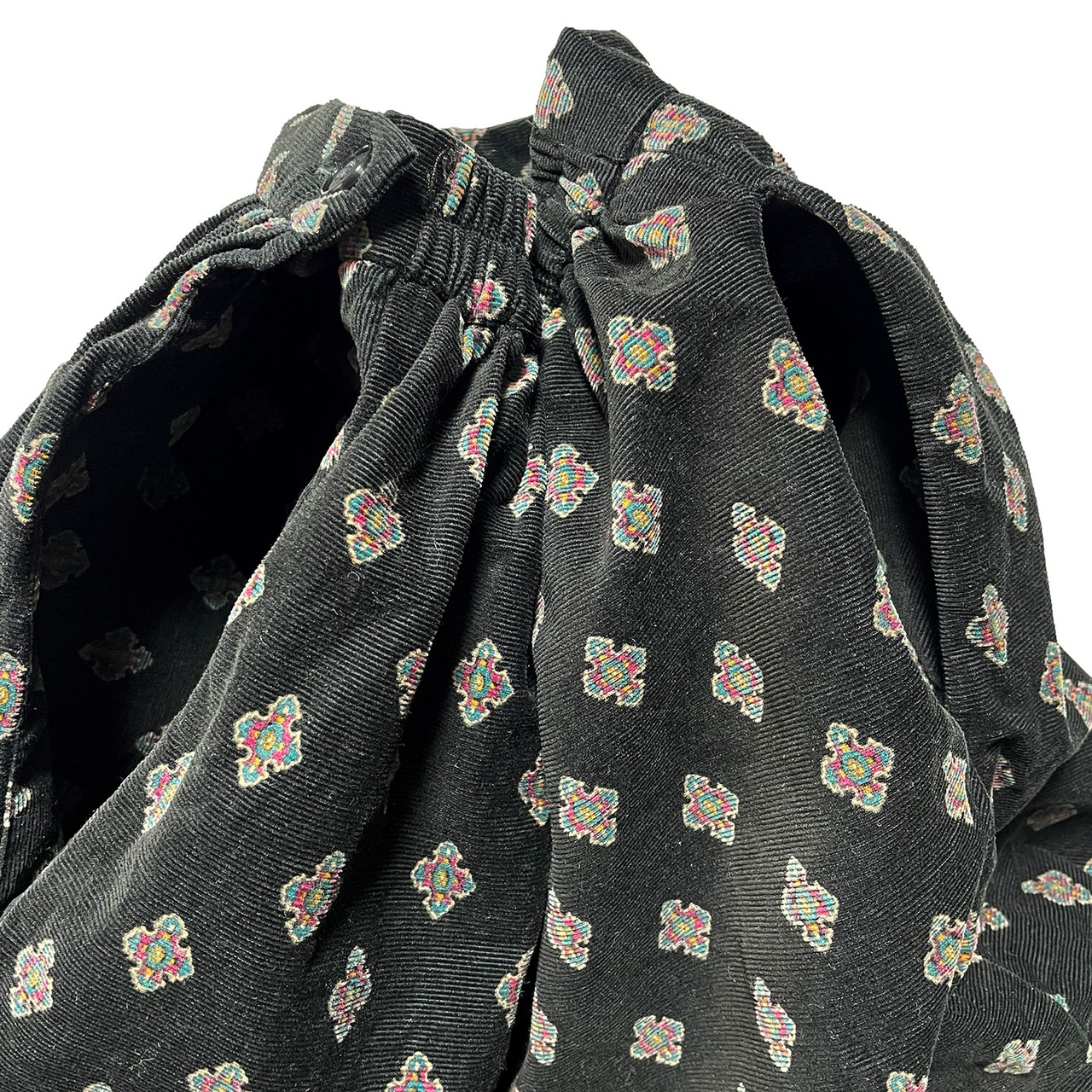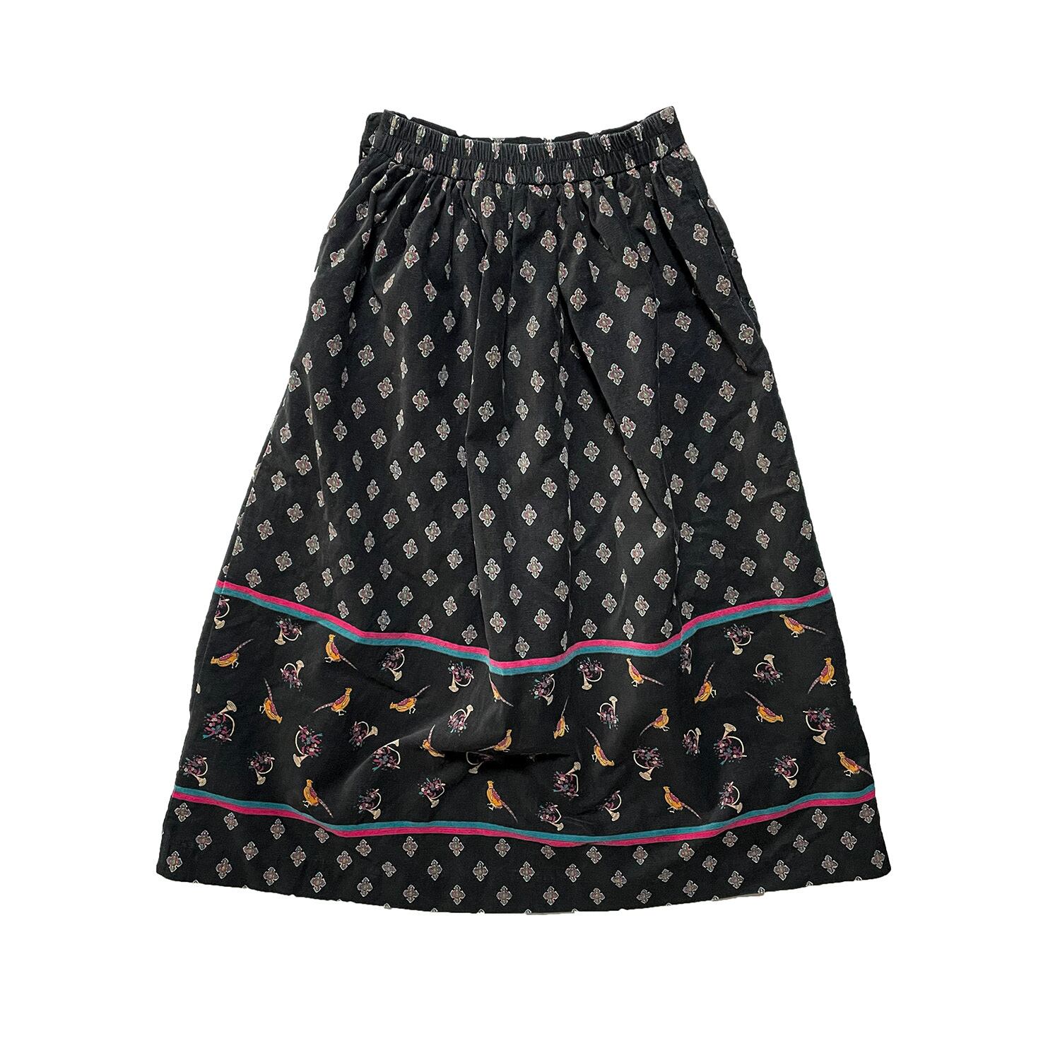 USA 古着 60S 70S USA製 F.A.CHATTA ヴィンテージ コットン 横畝 コーデュロイ 小紋柄 孔雀 フレアースカート ブラック 6号 CG0133