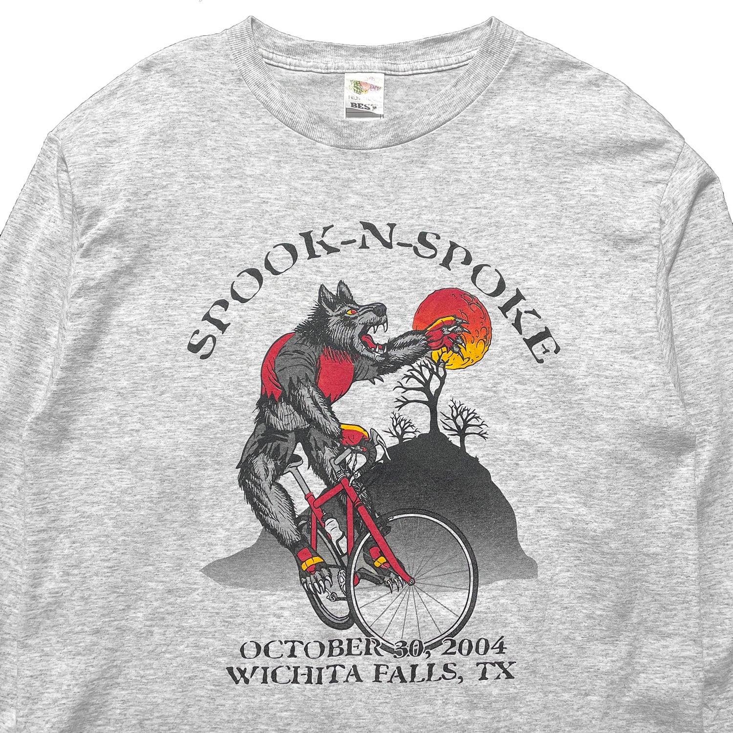 USA 古着 00S SPOOK-N-SPOKE ヴィンテージ オオカミ サイクリング 長袖Tシャツ ロンT メンズL グレー BA3376