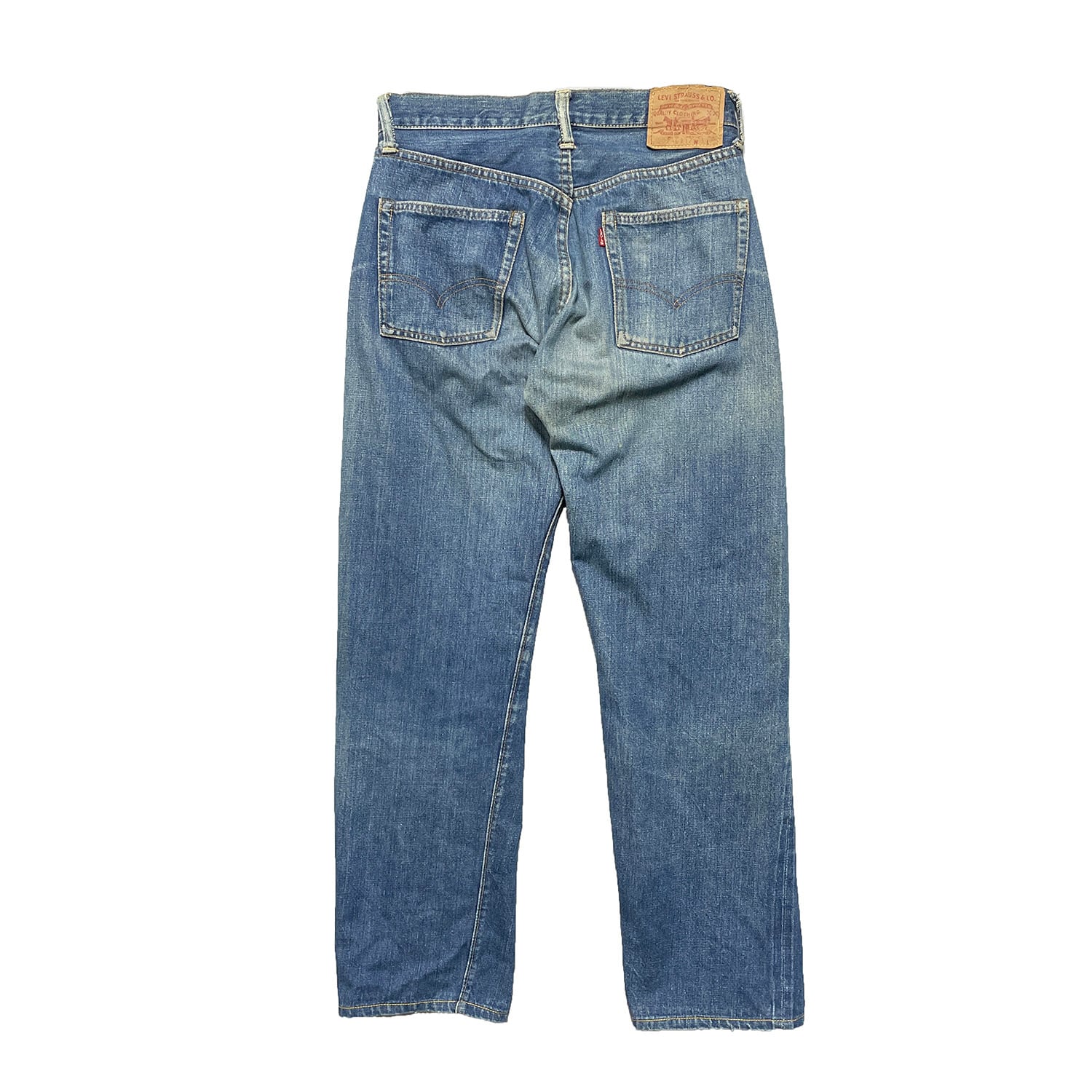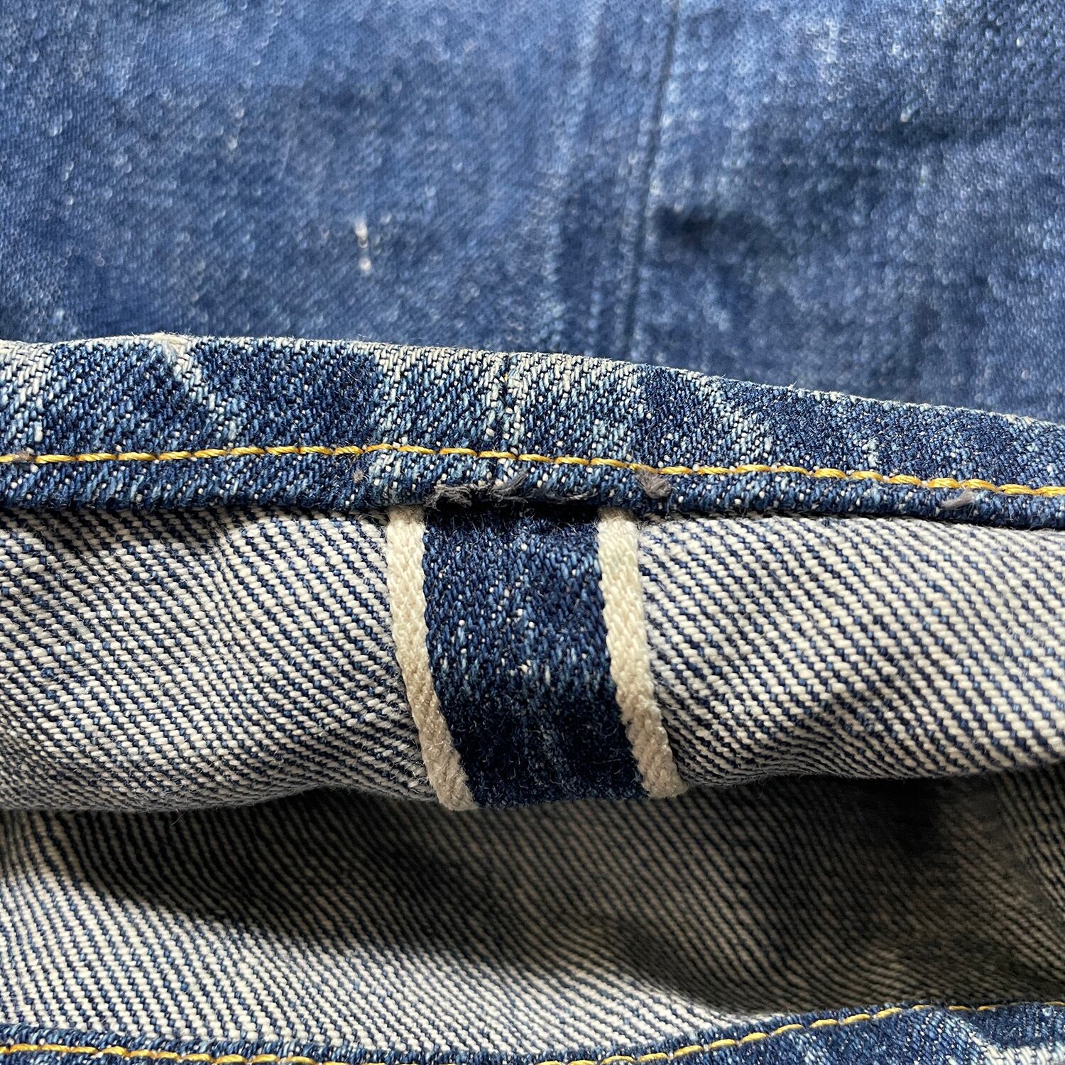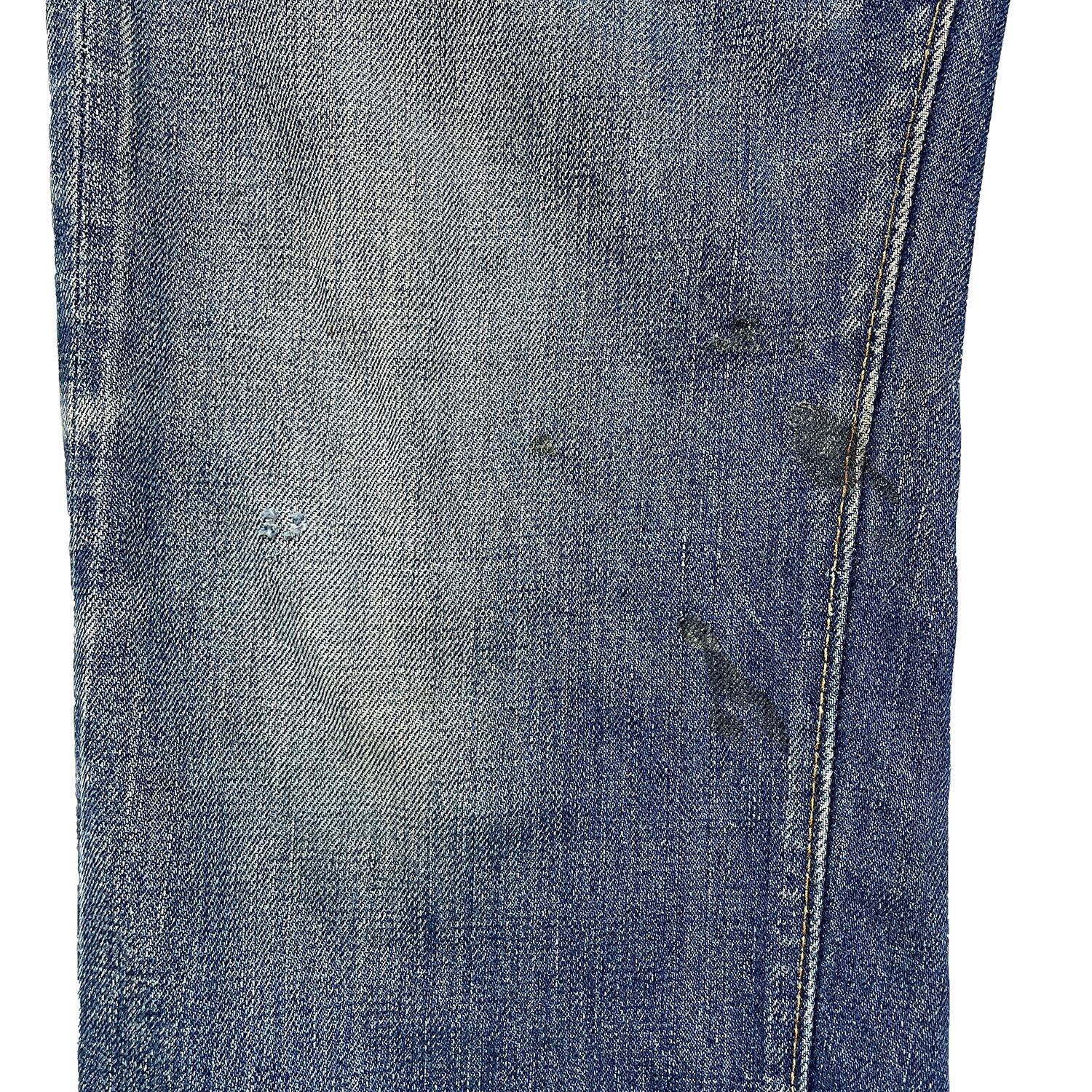 膝に小傷・股に擦れ・小さい汚れなどがあります。ヴィンテージデニムですがその他は特に着用に大きな問題はございません。こちらは洗濯済みになります。