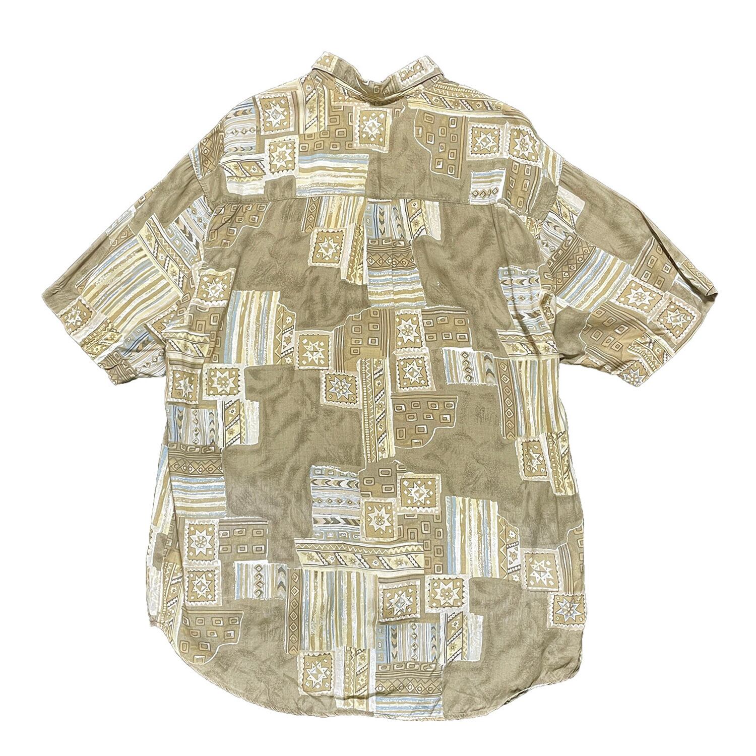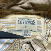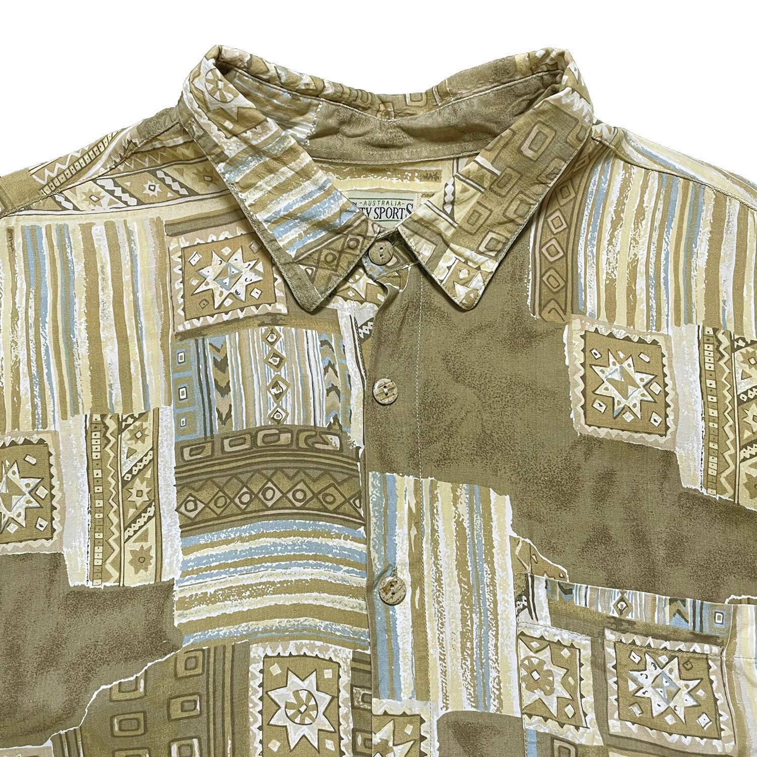 USA 古着 オーストラリア製 CITY SPORTS レーヨン 総柄 半袖シャツ アロハシャツ ハワイアンシャツ メンズXL ベージュ トライバル柄 BF2338