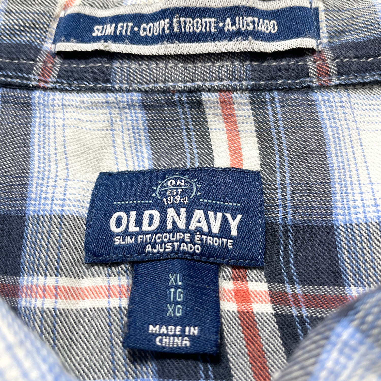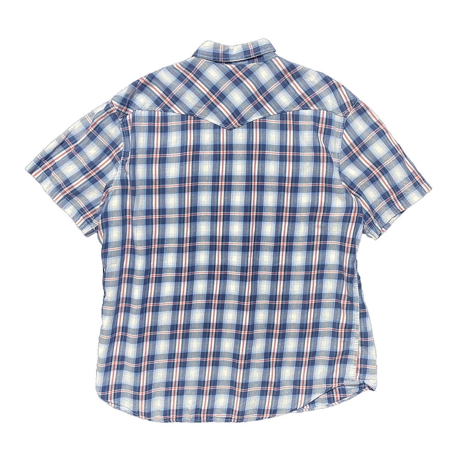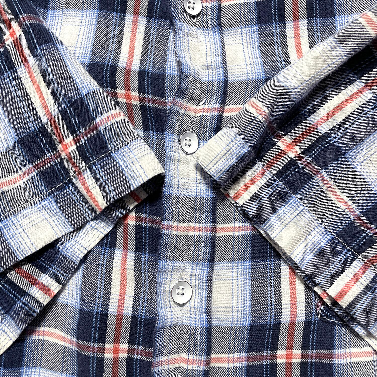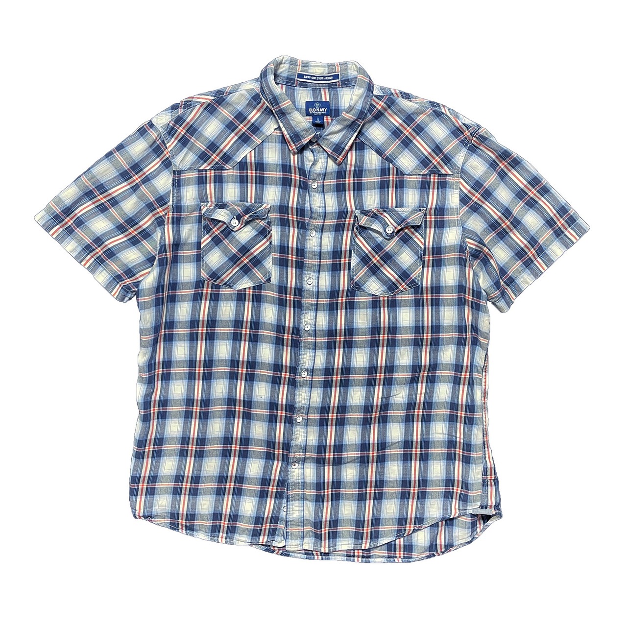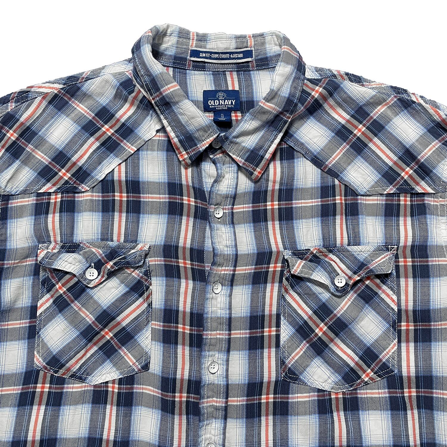 USA 古着 OLD NAVY オールドネイビー コットンチェック柄 ウエスタンシャツ 半袖シャツ メンズXL アメカジ BF2380