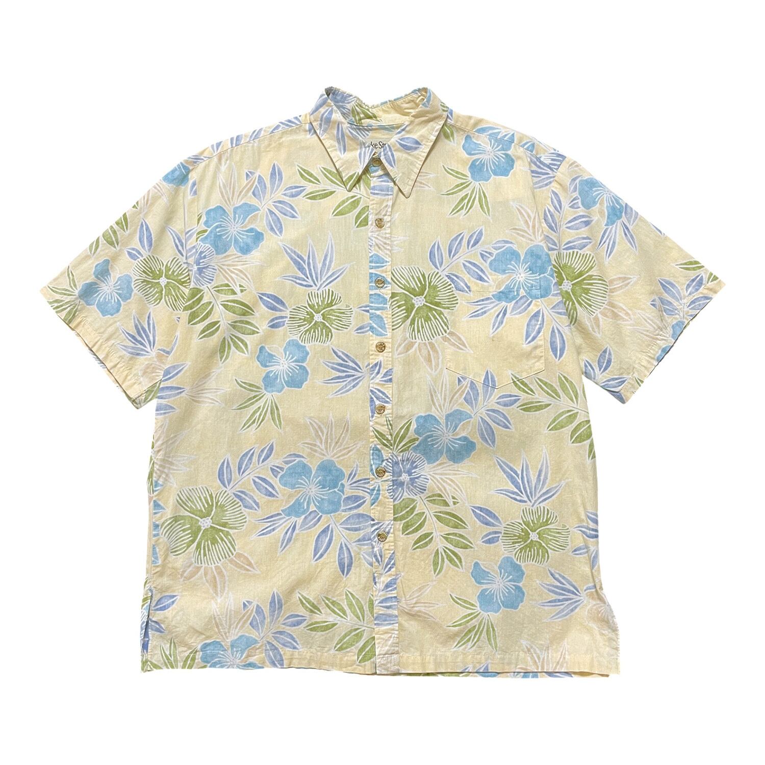USA 古着 COOKE STREET クックストリート コットン アロハシャツ ハワイアンシャツ ハイビスカス柄 メンズL 薄イエロー BF2403