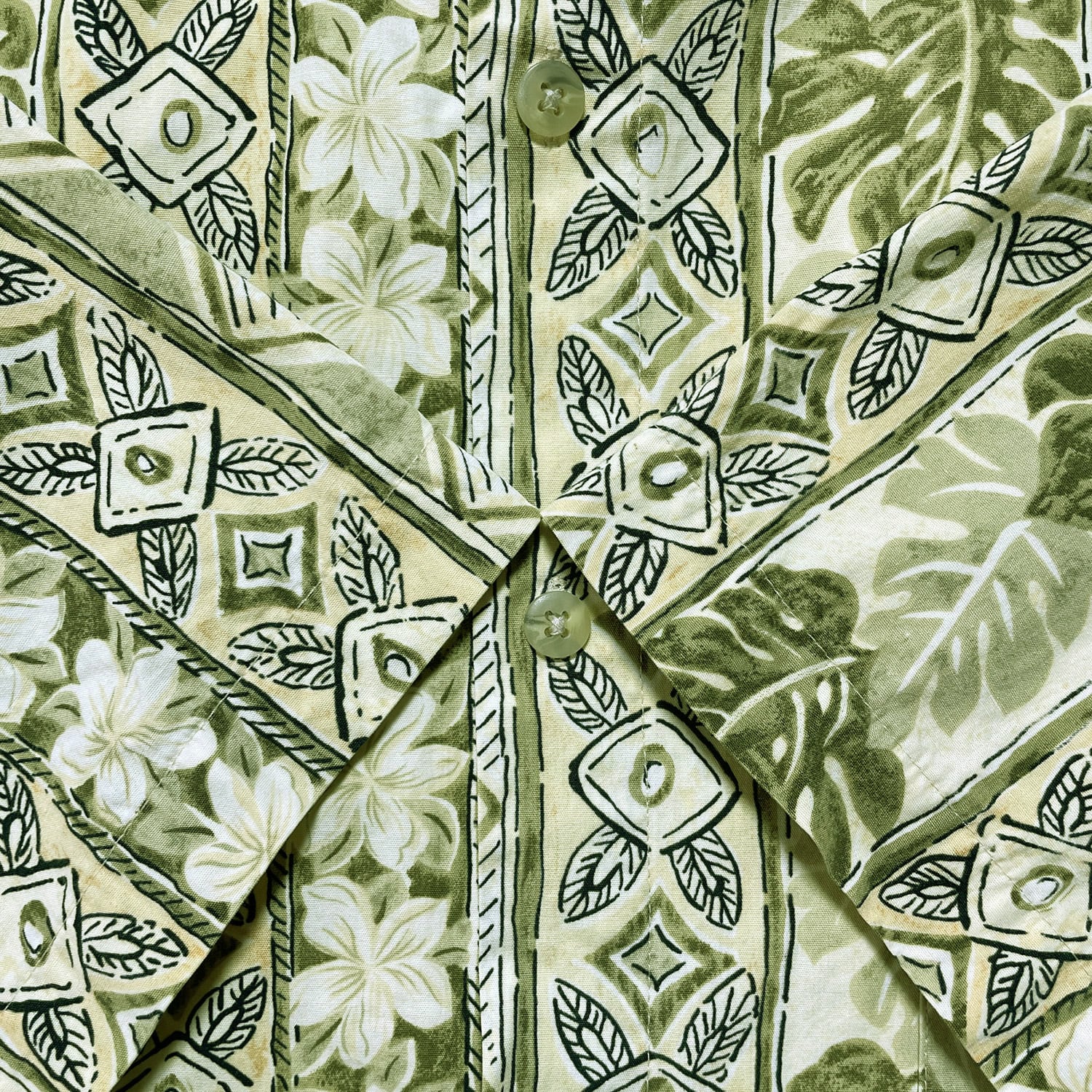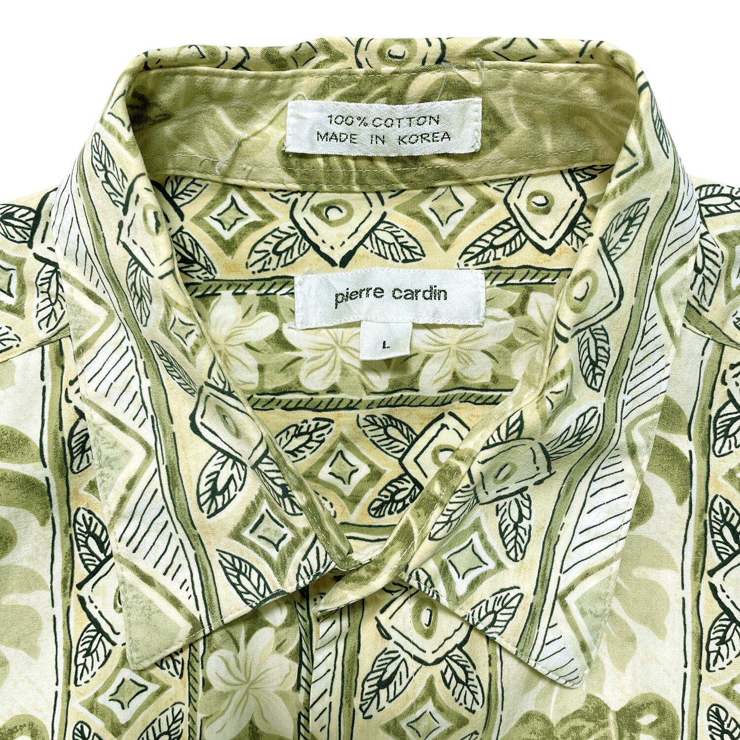 USA 古着 pierre cardin ヴィンテージ ピエールカルダン コットン アロハシャツ ハワイアンシャツ プルメリア柄 リーフ柄 メンズL BF2519