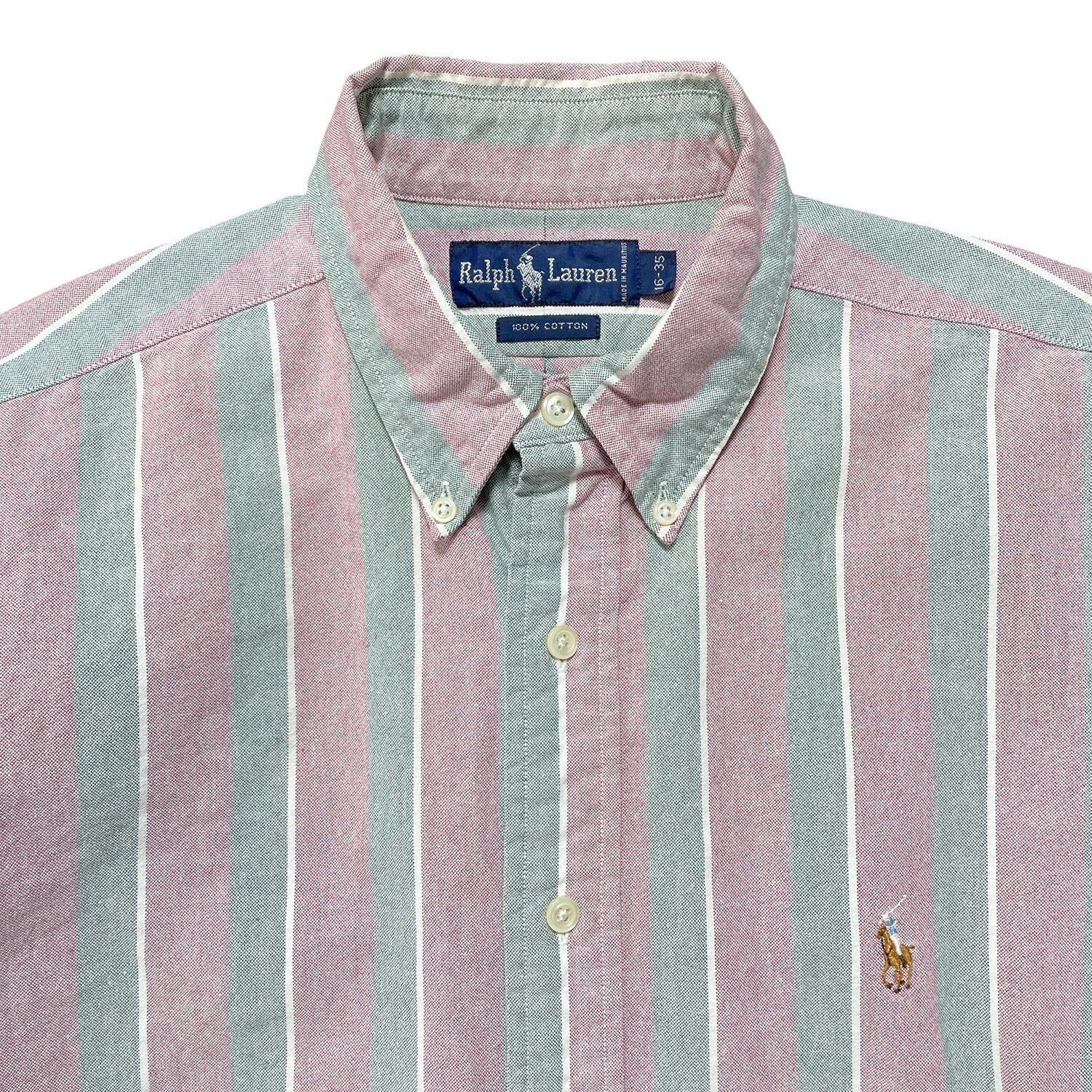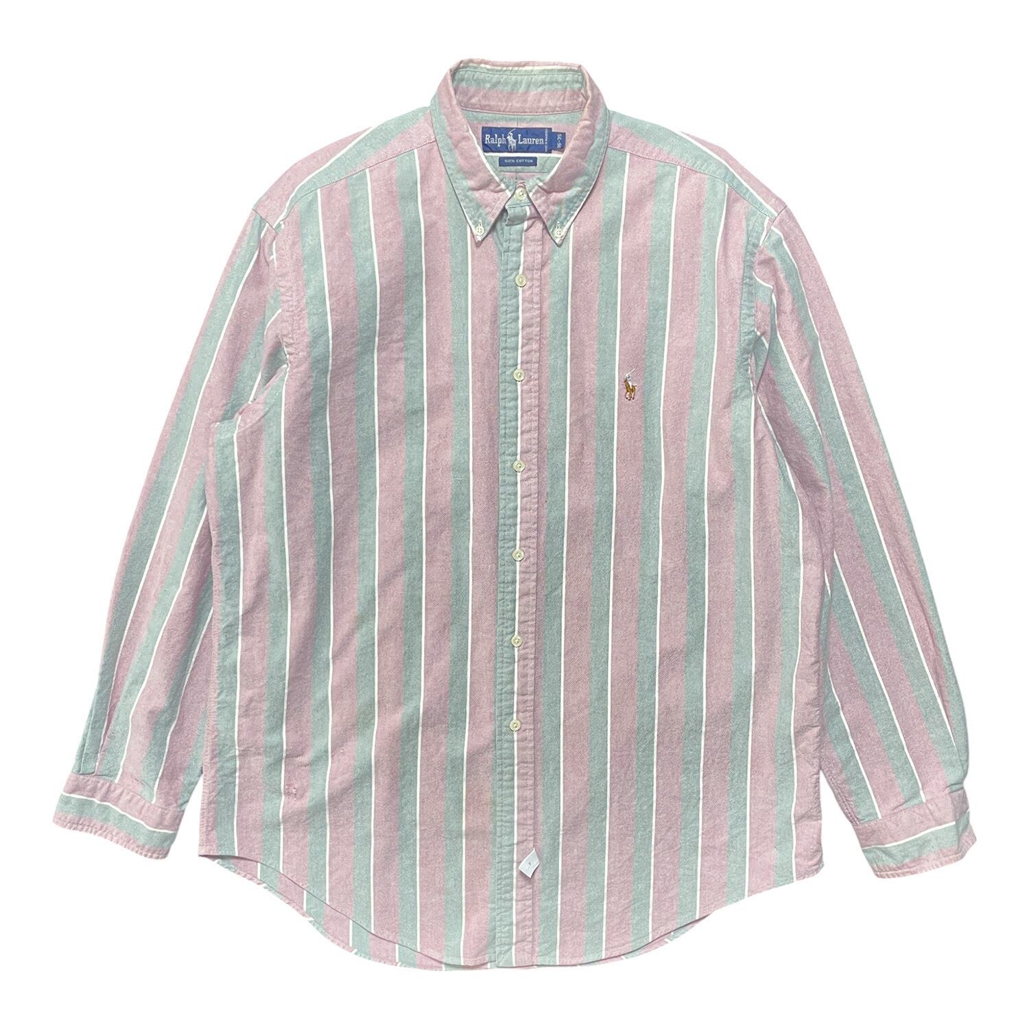 USA 古着 Ralph Lauren ラルフローレン コットン ワイドストライプ柄 長袖シャツ BDシャツ メンズXL相当 ボタンダウン カジュアル BG0903