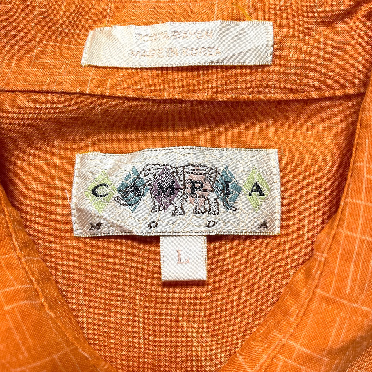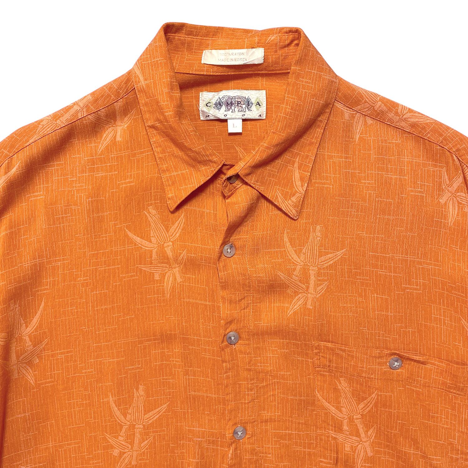 USA 古着 CAMPIA キャンピア アロハシャツ ハワイアンシャツ レーヨン オレンジ バンブー柄 メンズL BF2629