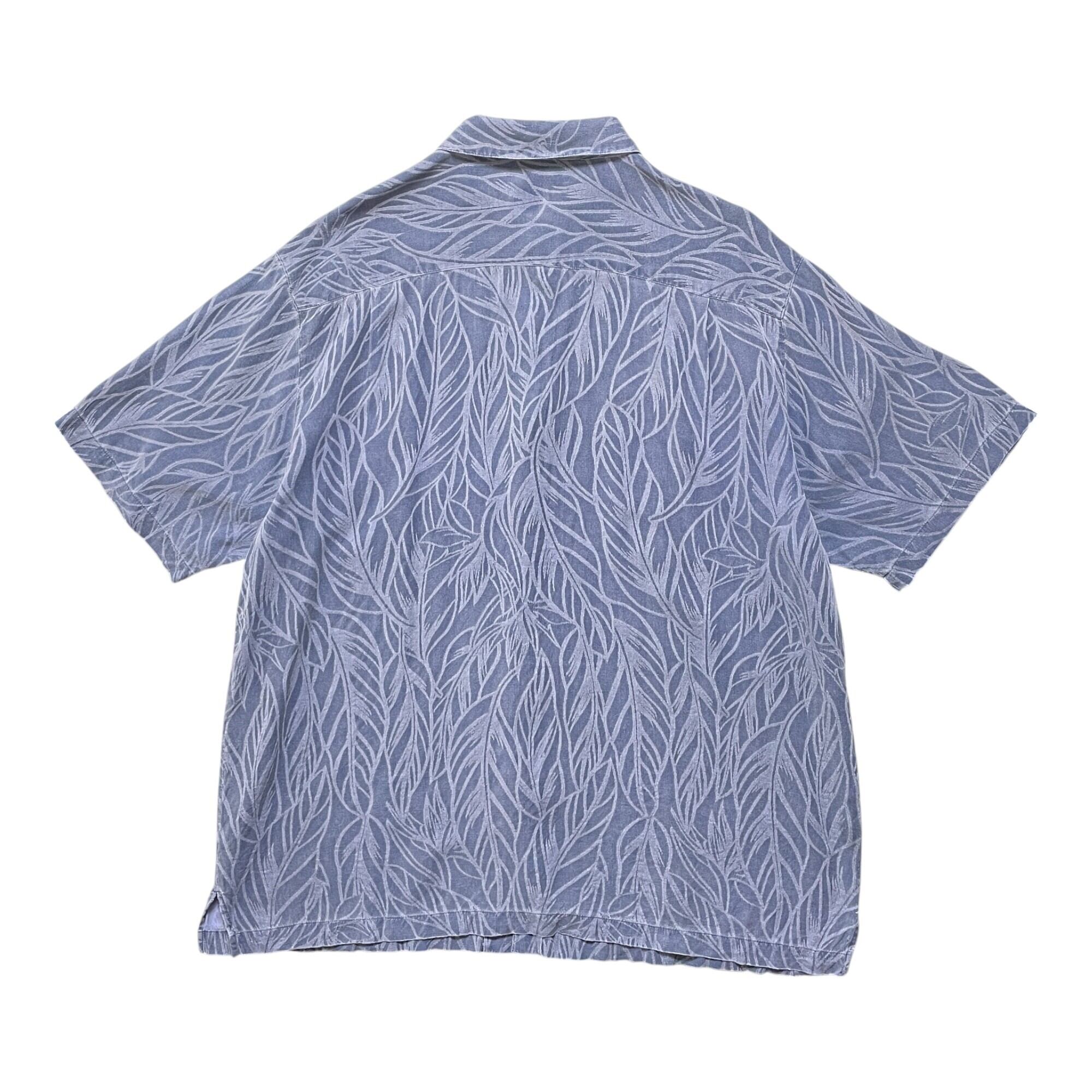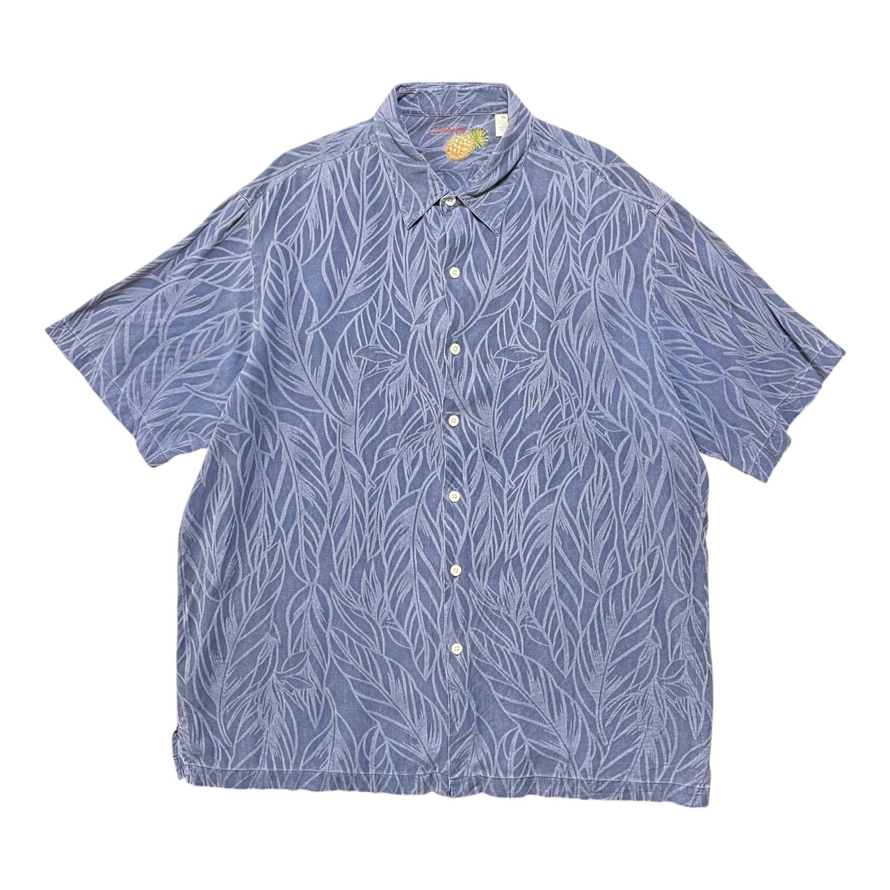 USA 古着 カリビアン アロハシャツ ハワイアンシャツ シルク/レーヨン 開襟 ジャガード ネイビー メンズXL BF2633