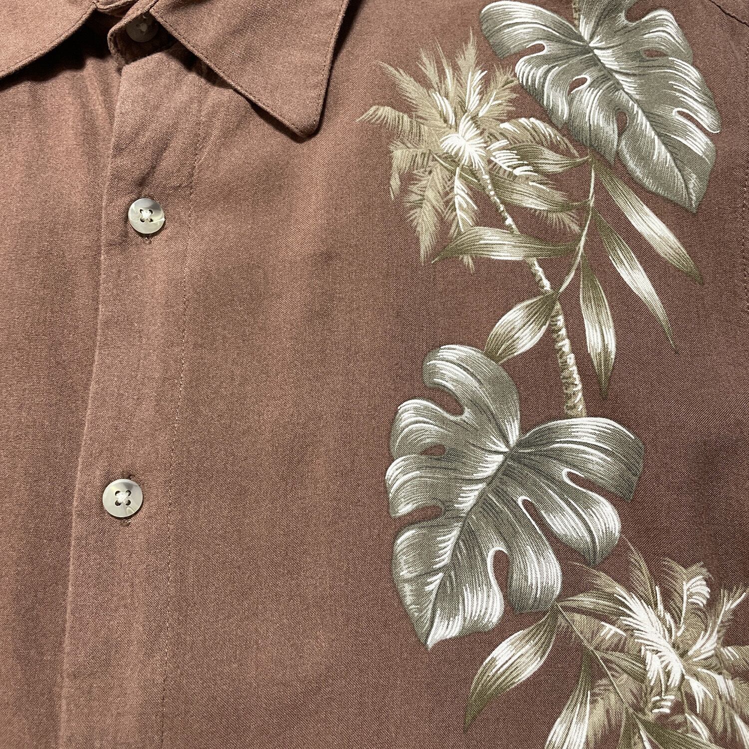 USA 古着 Croft&Barrow クラフト&バロー アロハシャツ ハワイアンシャツ レーヨン ブラウン リーフ柄 メンズM BF2643
