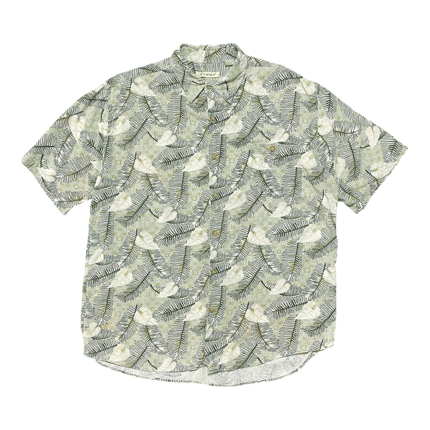USA 古着 SUMMA アロハシャツ ハワイアンシャツ シルク リーフ柄 カーキ メンズ1XLT 大きいサイズ BF2648