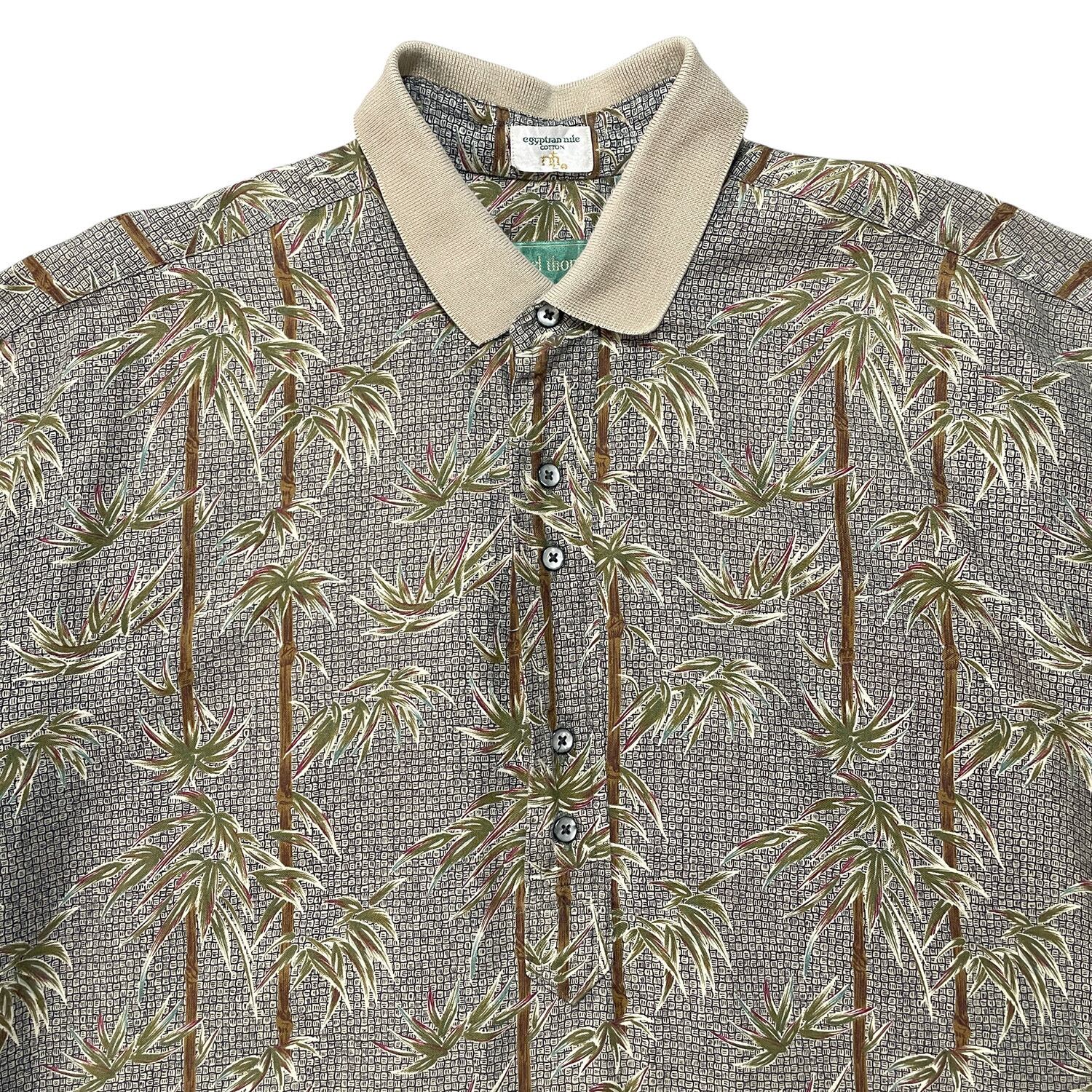 USA 古着 90S USA製 MICHAEL THOMAS コットン バンブー柄 プルオーバー アロハシャツ ポロシャツ ハワイアンシャツ メンズL BF2689