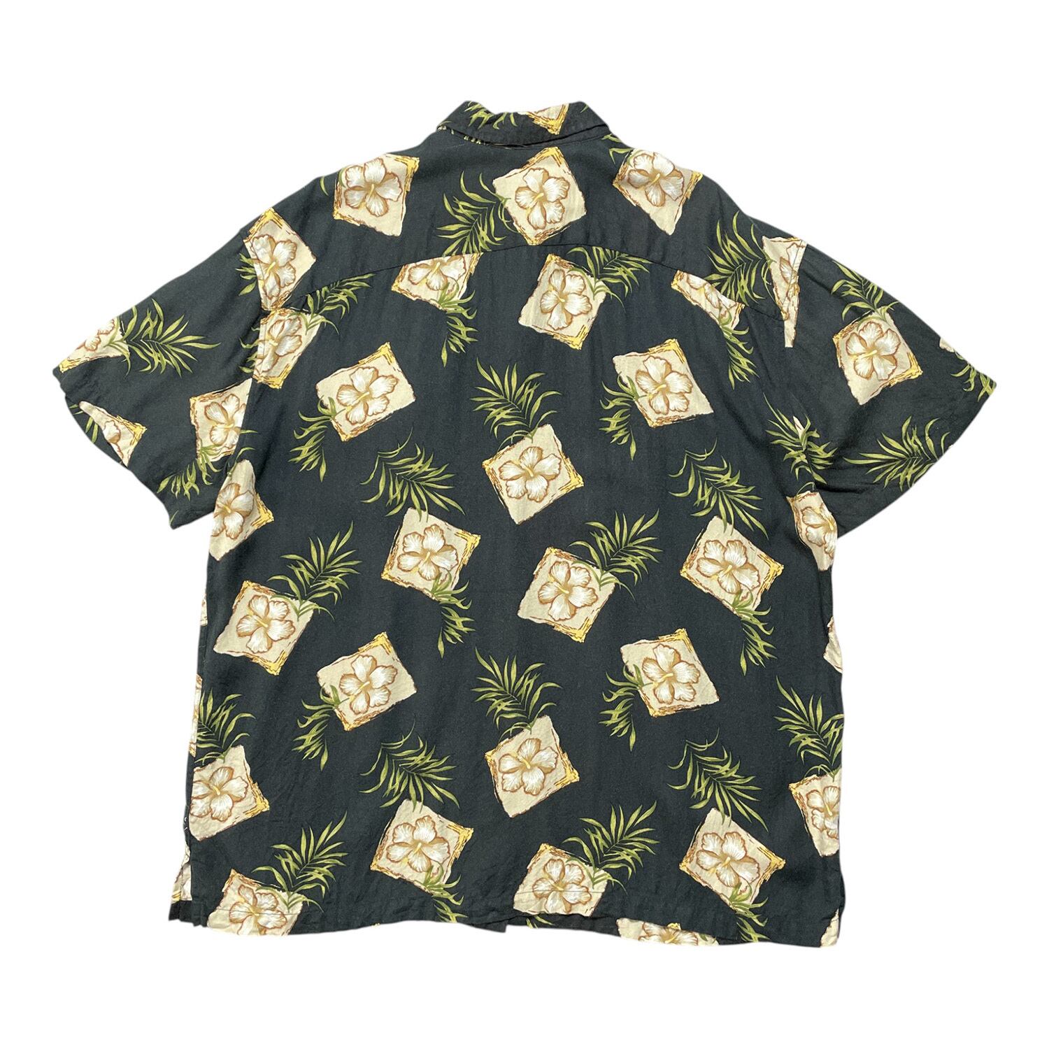 USA 古着 SUN RIVER アロハシャツ ハワイアンシャツ レーヨン ブラック ハイビスカス メンズXL BF2640