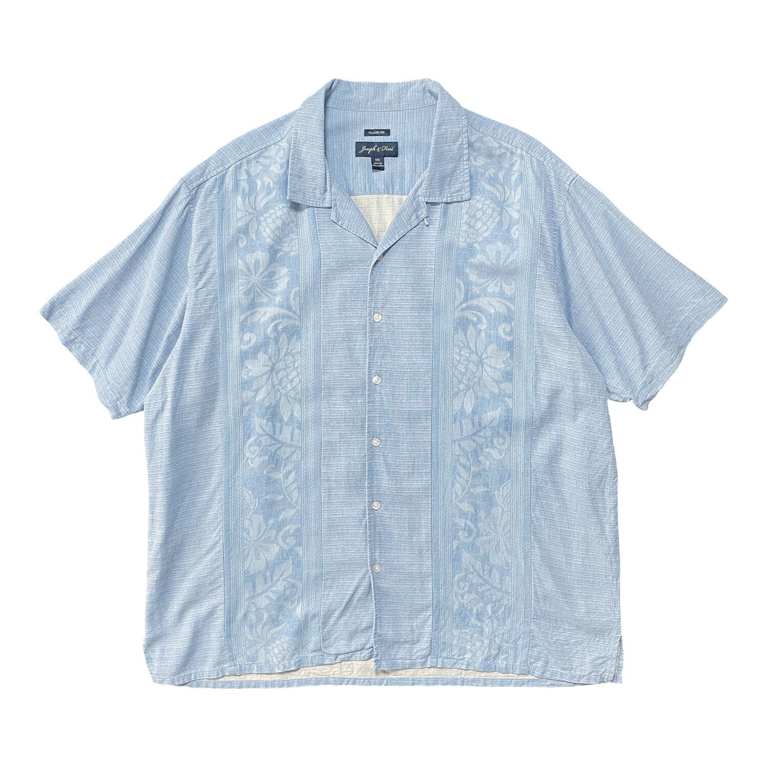 USA 古着 JOSEPH&FEISS シルク ジャガード アロハシャツ ハワイアンシャツ メンズXXL サックスブルー ヴィンテージ 大きいサイズ BF2694