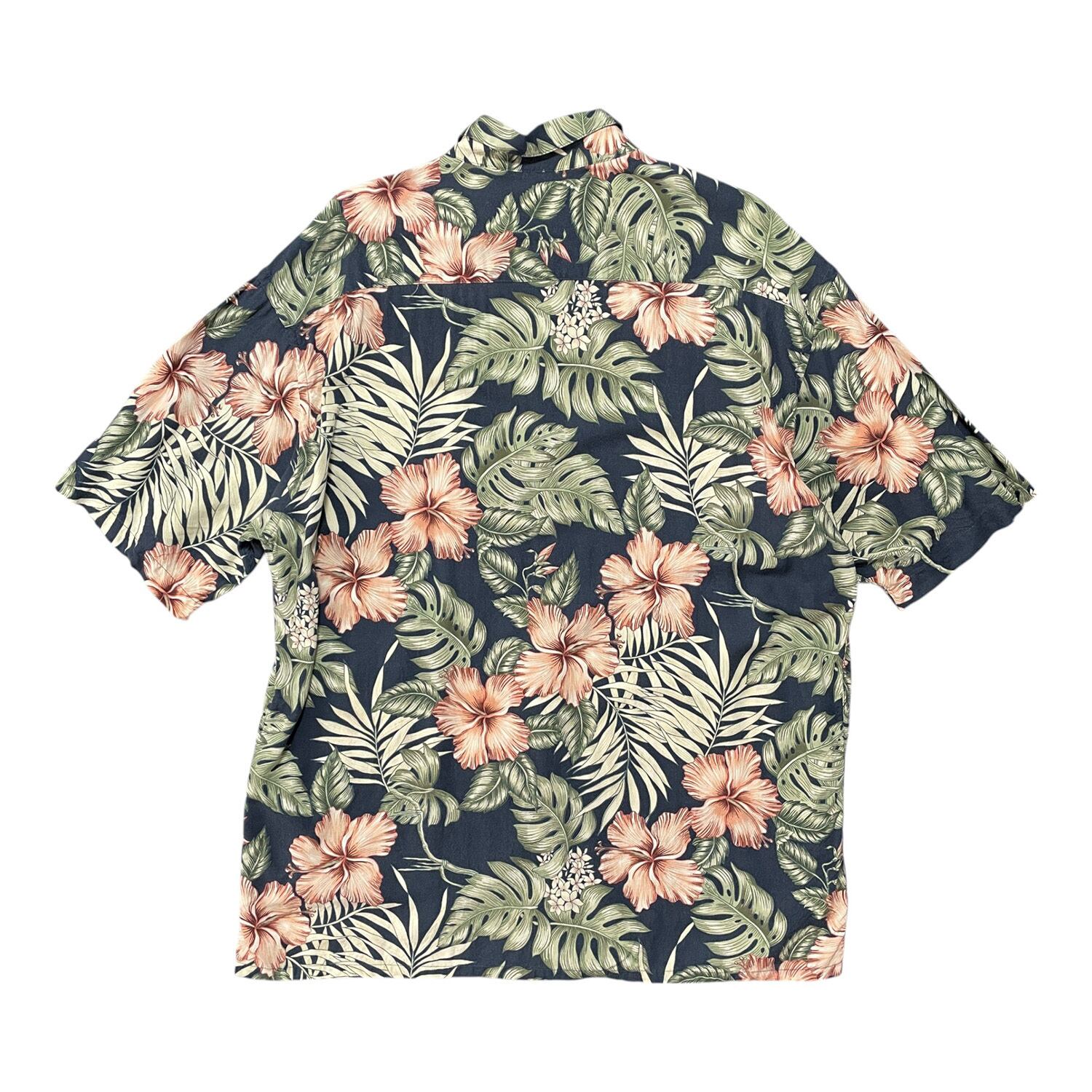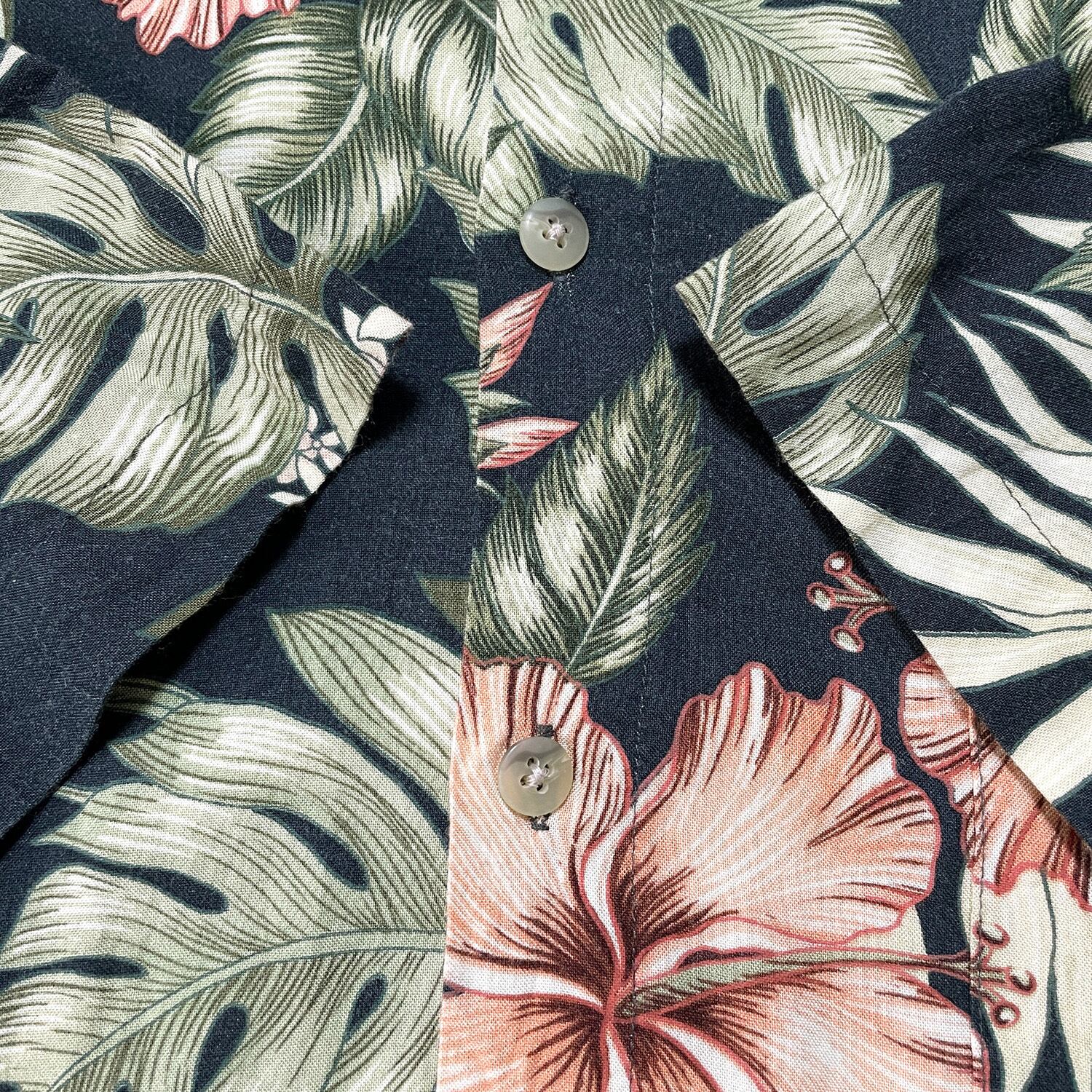 USA 古着 CAMPIA MODA カンピア モダ レーヨン アロハシャツ ハワイアンシャツ リーフ柄 メンズXL相当 ネイビー 紺色 BF2700