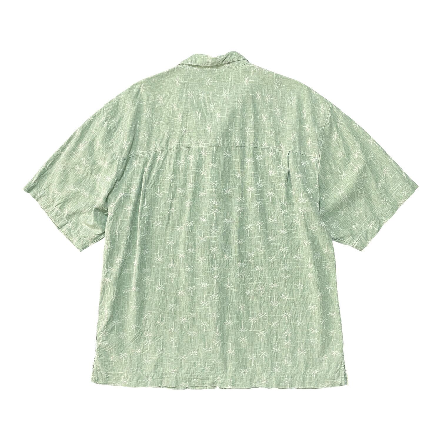 USA 古着 Bermuda Bay バミューダベイ シルク 開襟 ジャガード アロハシャツ ハワイアンシャツ パームツリー メンズXL BF2737