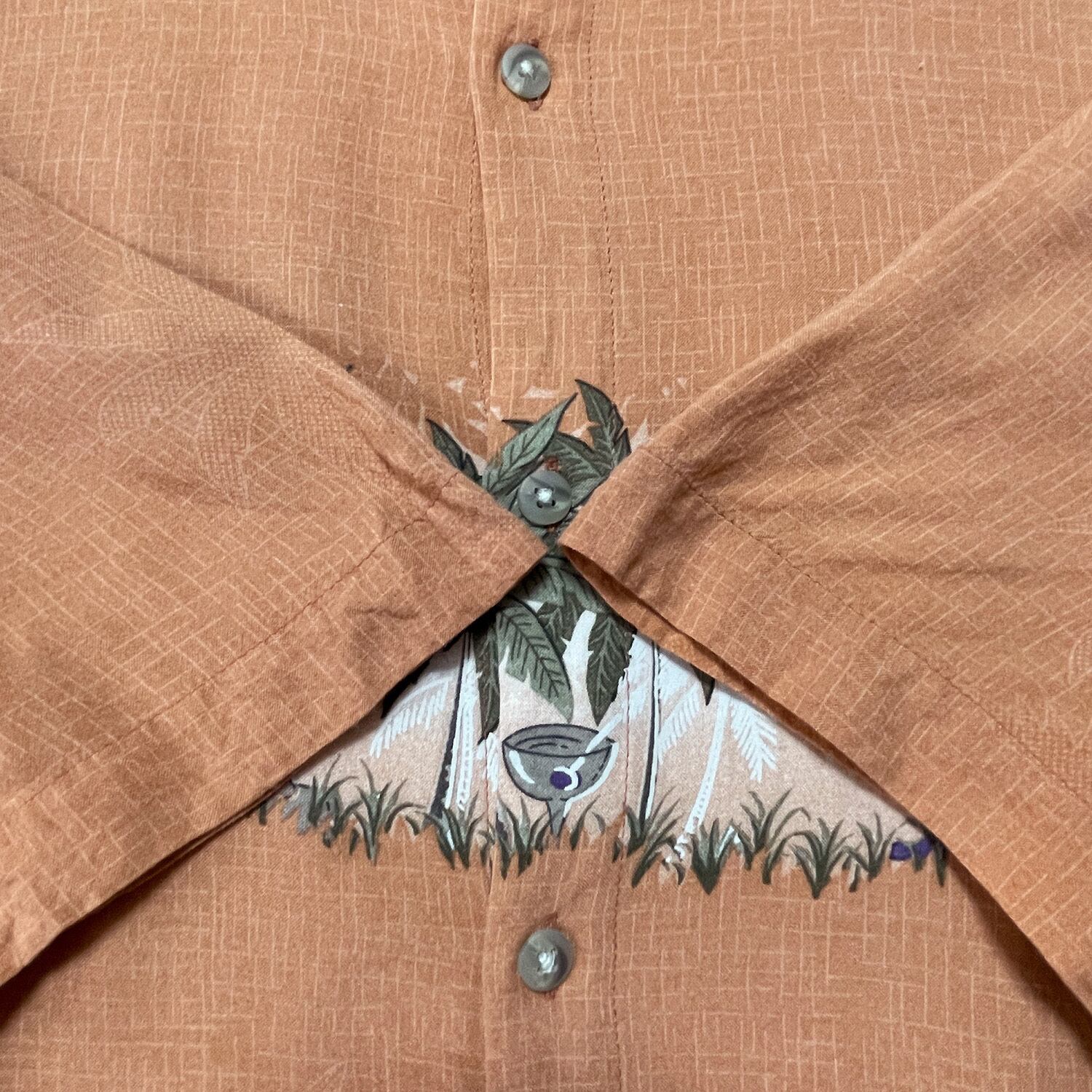 USA 古着 croft&barrow クロフト&バロー レーヨン アロハシャツ ハワイアンシャツ メンズL カクテル パームツリー柄 オレンジ BF2768