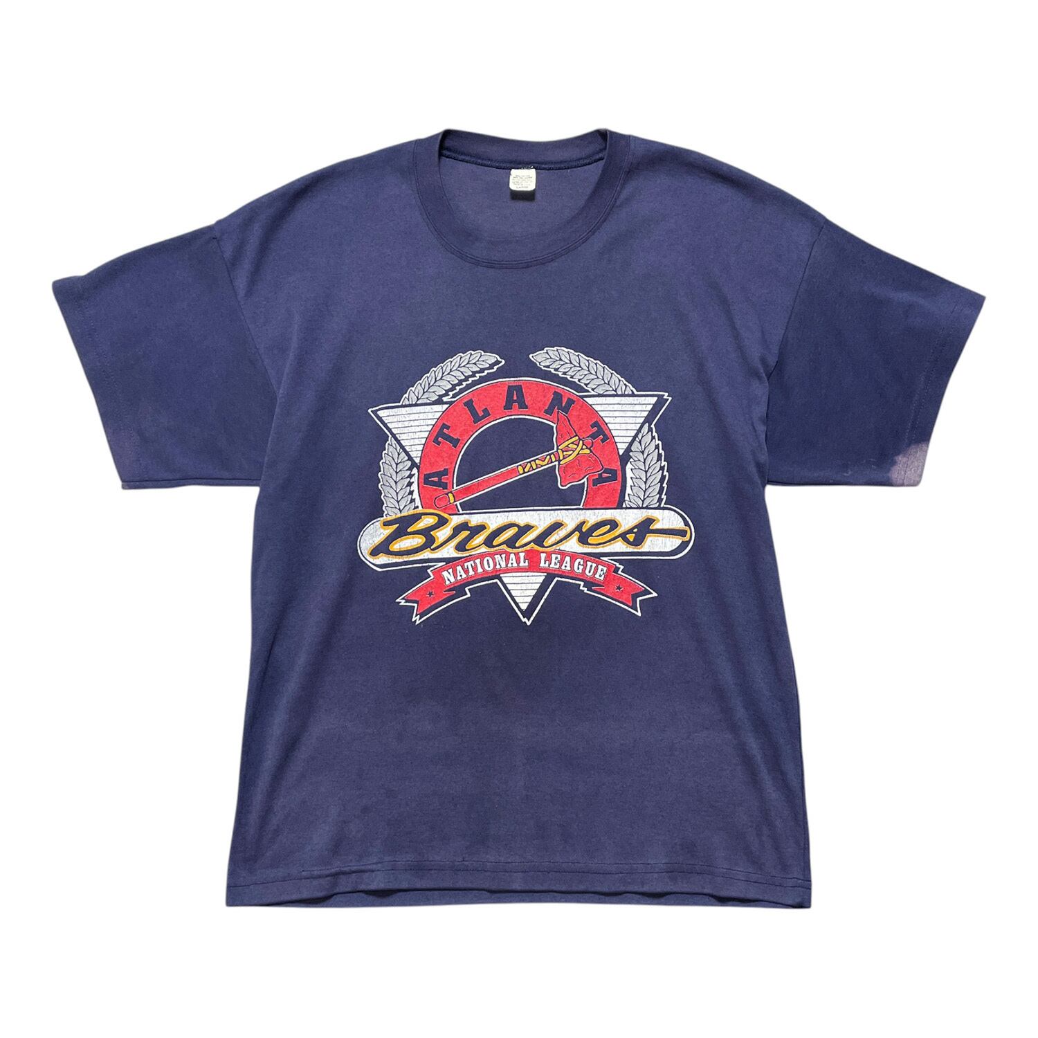 古着 USA製 90S MLB アトランタブレーブス Tシャツ ヴィンテージ ロゴ プリント ネイビー メンズL BA3691