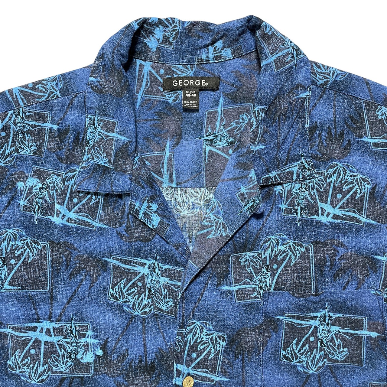 USA 古着 GEORGE ジョージ レーヨン 開襟 アロハシャツ ハワイアンシャツ トラディショナル柄 メンズXL ネイビー BF2793