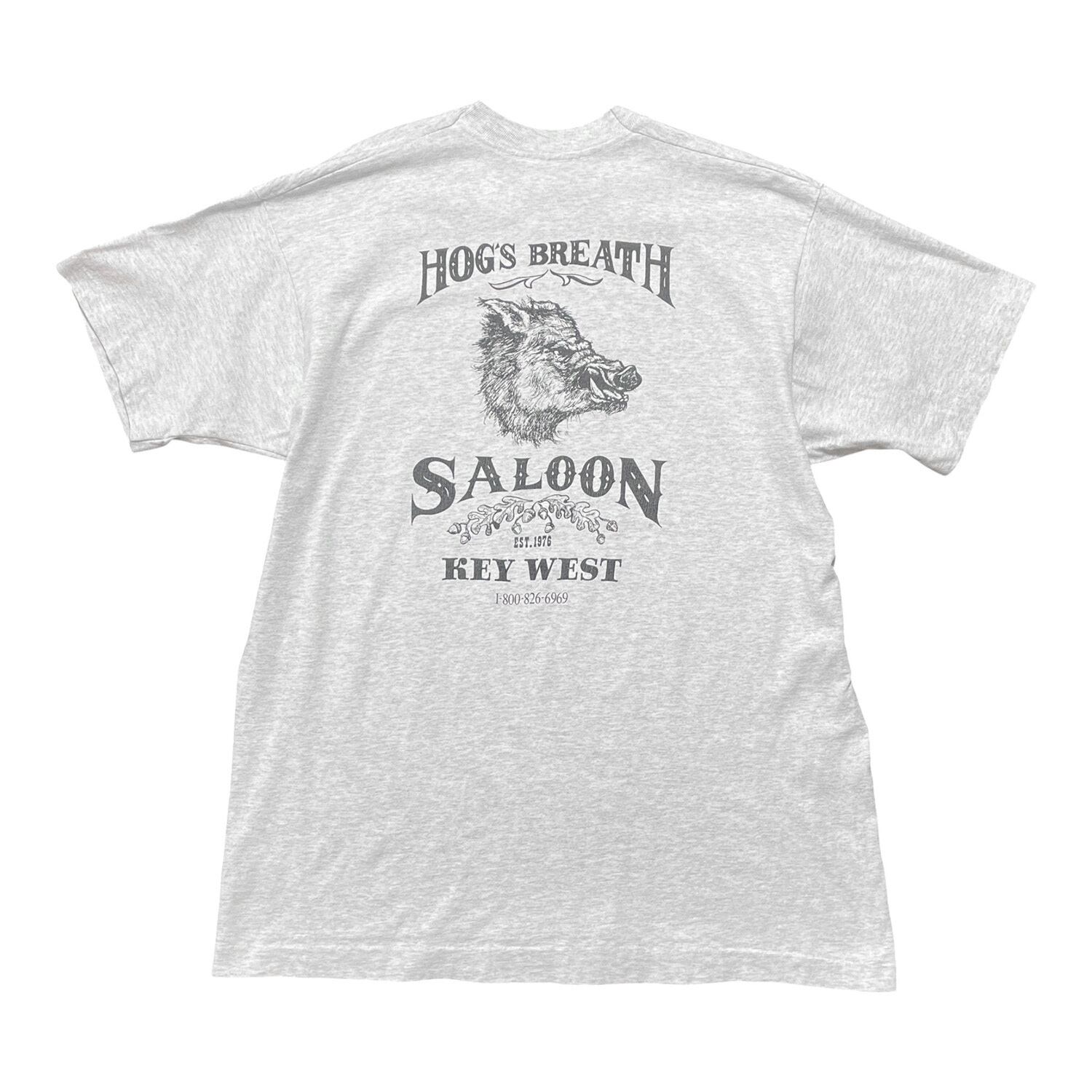 古着 90S USA製 ヴィンテージ HOG'S BREATH SALOON イノシシ バックプリント Tシャツ メンズXL ライトグレー シングルステッチ BA3709