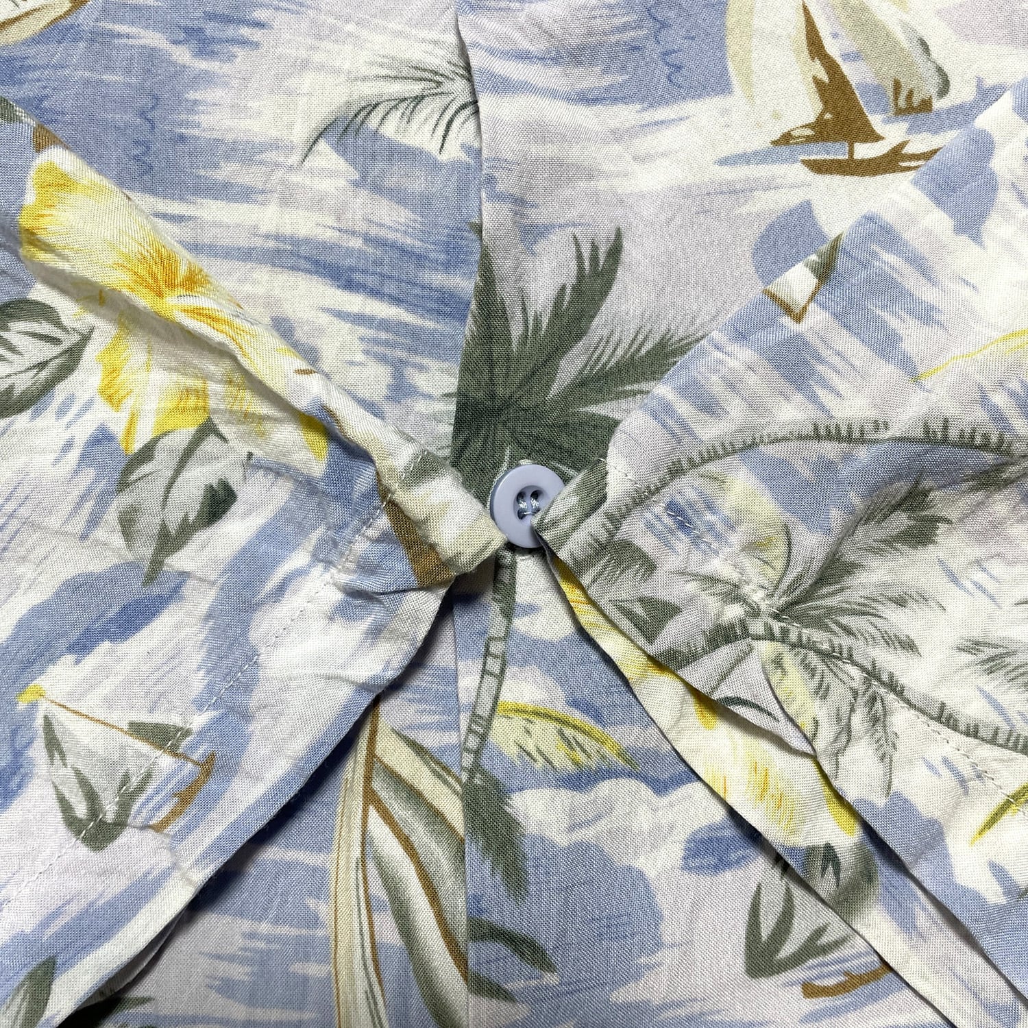 USA 古着 PROFILE プロファイル レーヨン アロハシャツ ハワイアンシャツ 開襟 ヨット ハイビスカス メンズXXL 大きいサイズ BF2865