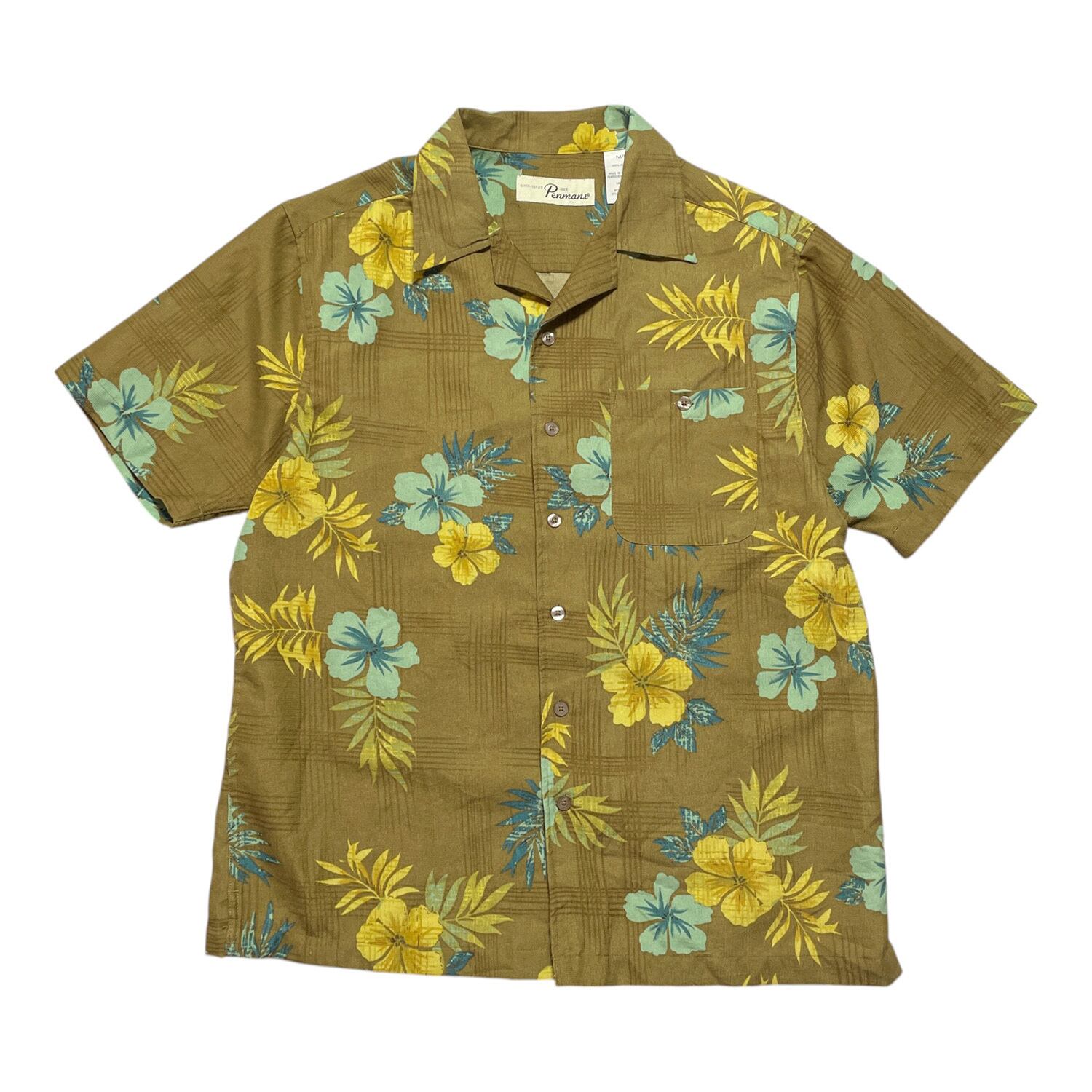 USA 古着 Penmans ペンマンズ ポリエステル アロハシャツ ハワイアンシャツ 開襟 ハイビスカス ブラウン メンズM BF2869