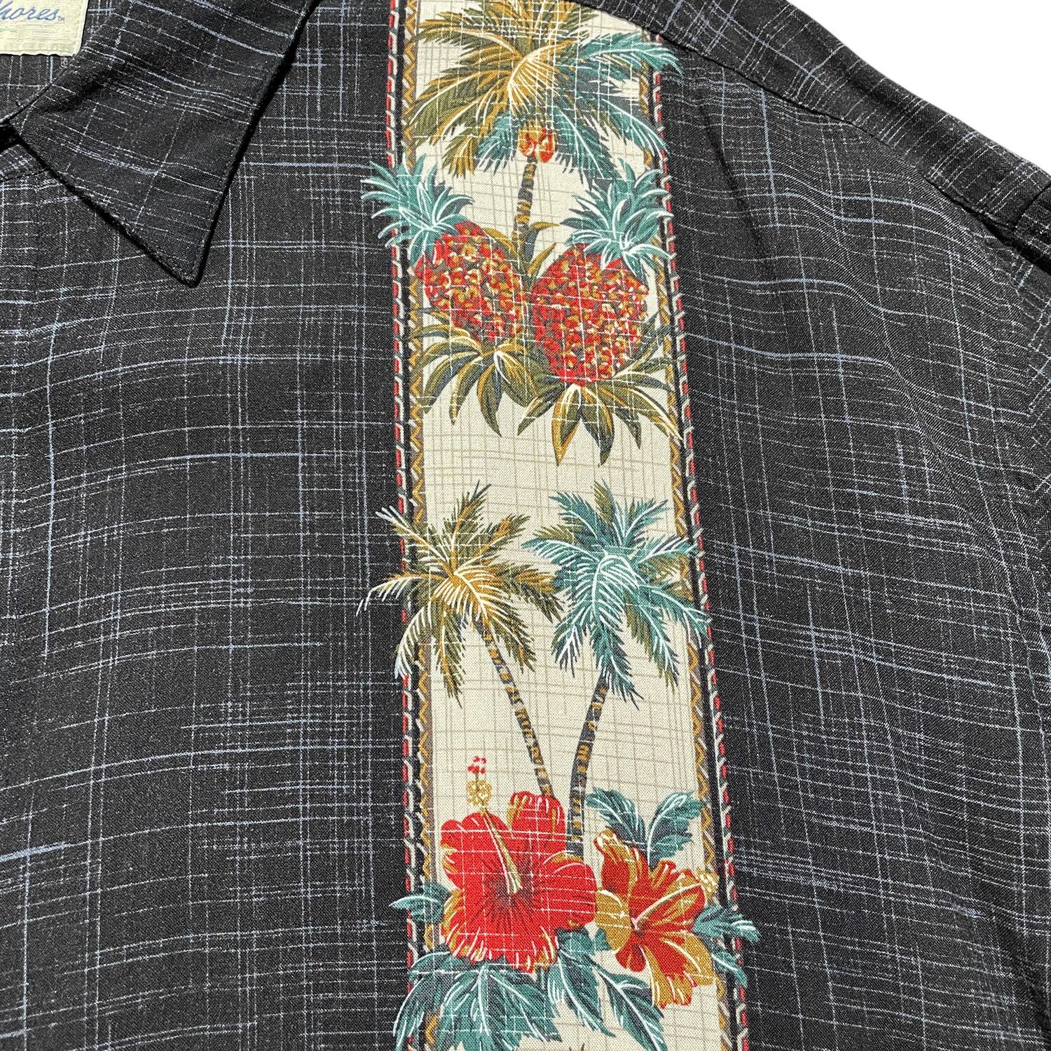 USA 古着 Island shores アイスランドショアーズ レーヨン アロハシャツ ハワイアンシャツ ボーダー リーフ柄 メンズXXL ブラック BF2913