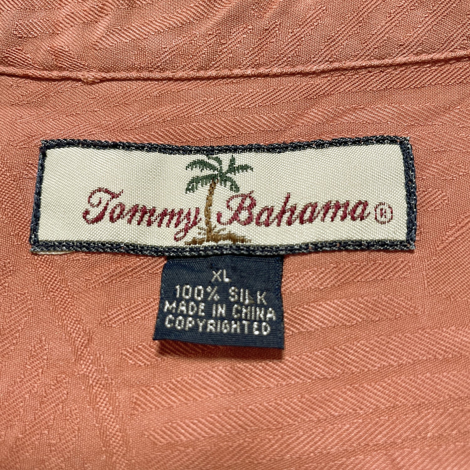 USA 古着 Tommy Bahama トミーバハマ シルク アロハシャツ キャンプシャツ ジャガード 総柄 メンズXL ピンク BF2980