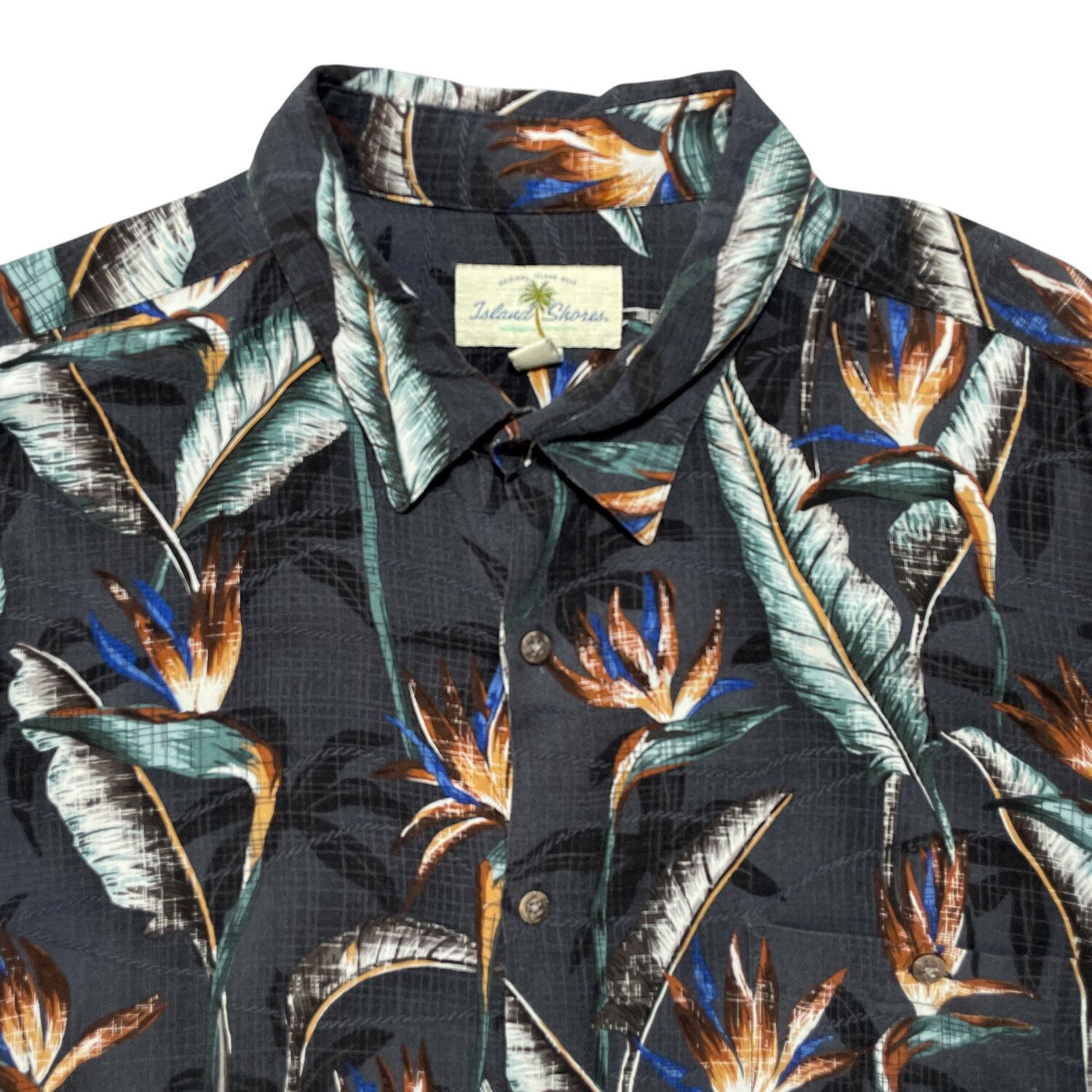 USA 古着 ISLAND SHORES アイスランドショアーズ レーヨン アロハシャツ ハワイアンシャツ リーフ柄 メンズXXL ブラック系 黒色 BF2931